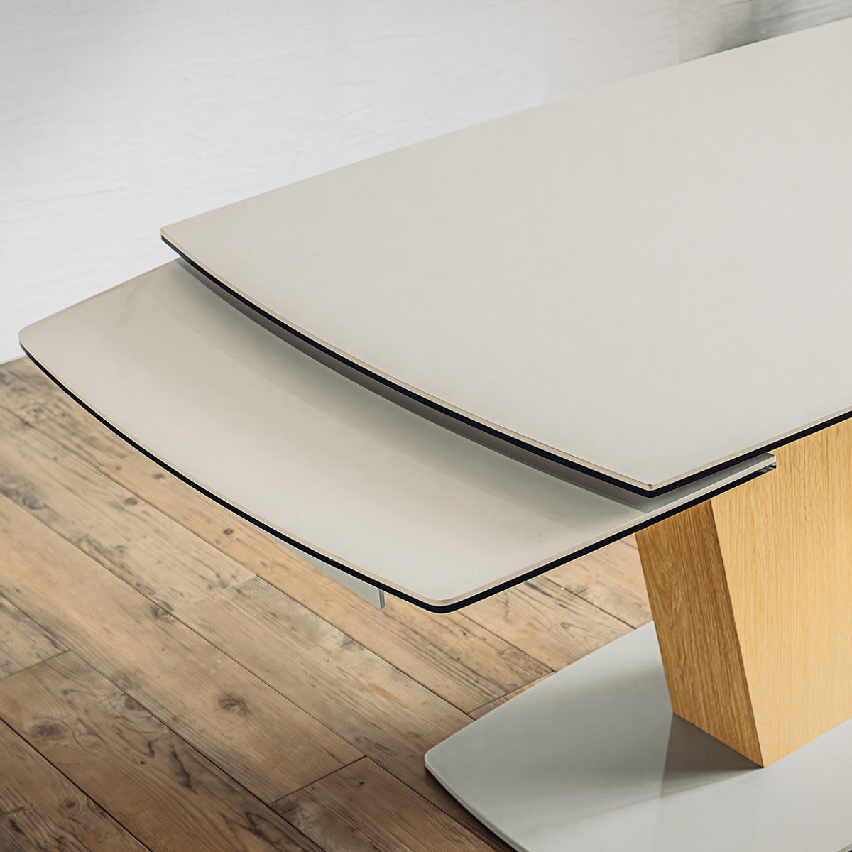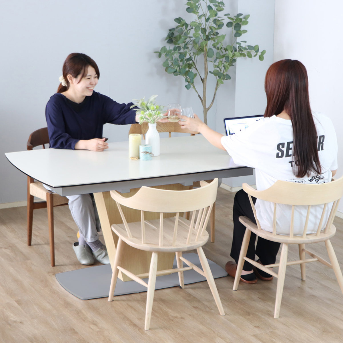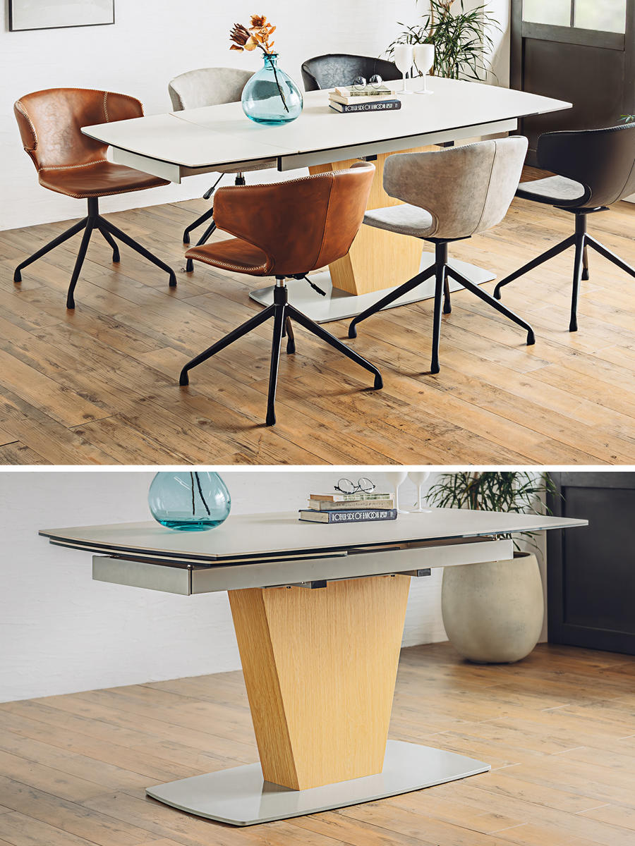 セラミック天板の伸長式ダイニングテーブル
