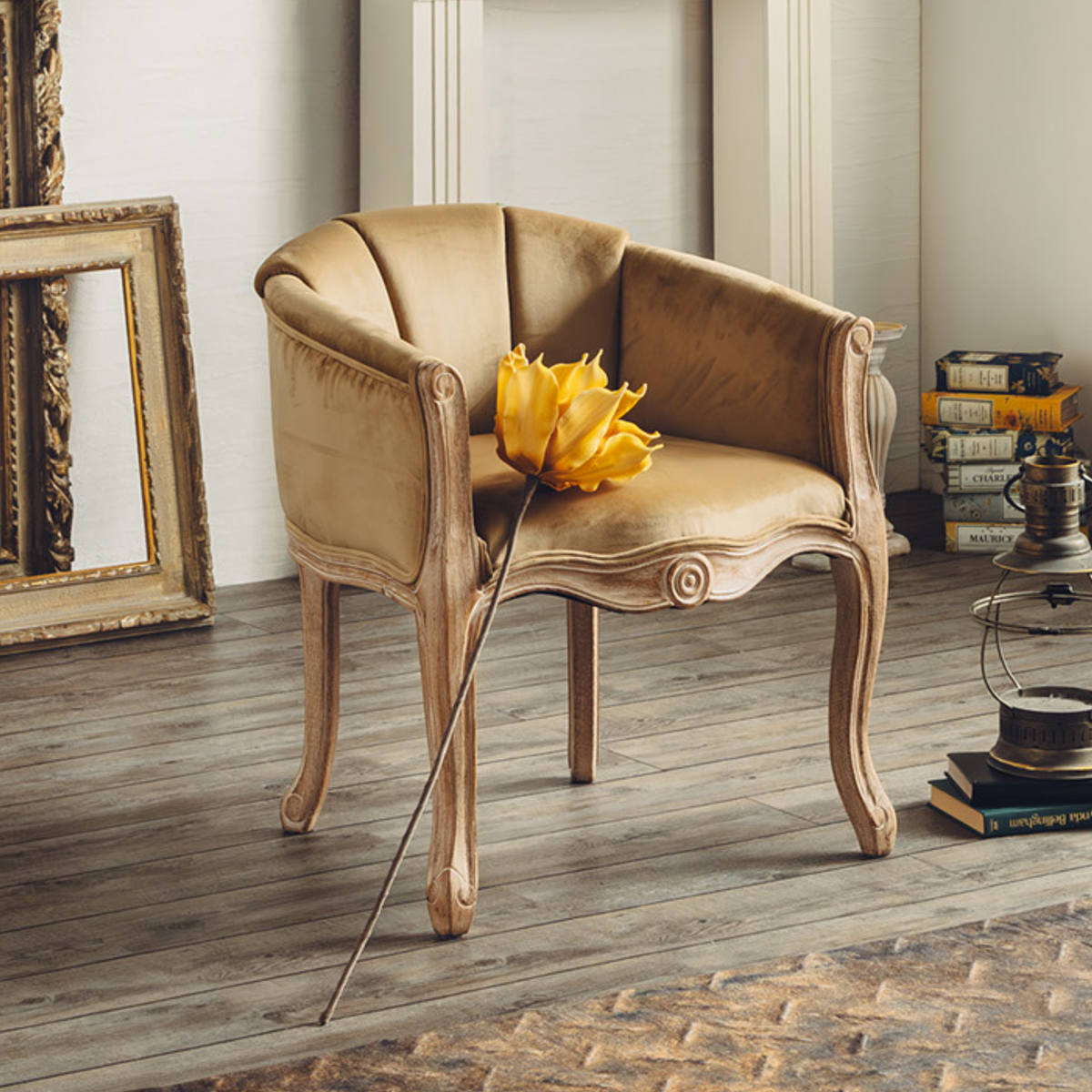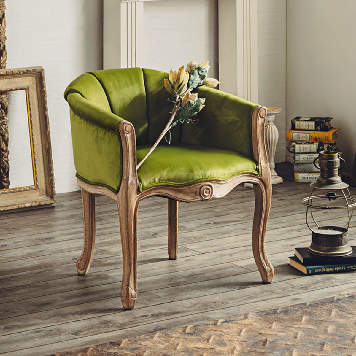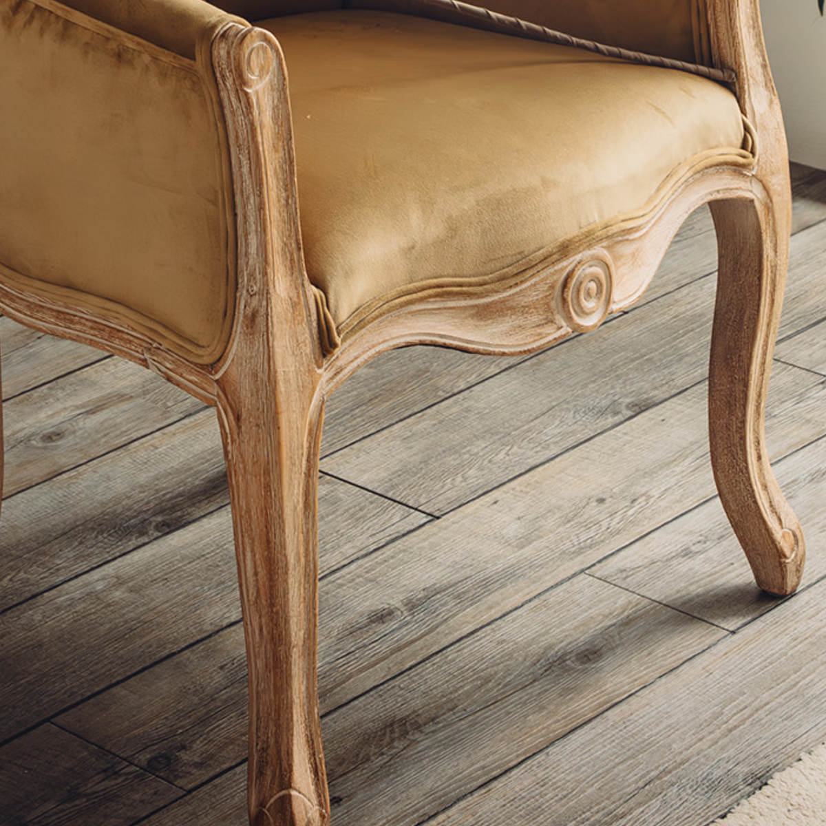 脚部にはラバーウッドを採用し、使い込まれたようなヴィンテージ感のある木目や色合いに仕上げています。 また、ゆるやかなカーブを描いた猫脚のデザインがクラシカルで上品な印象です。