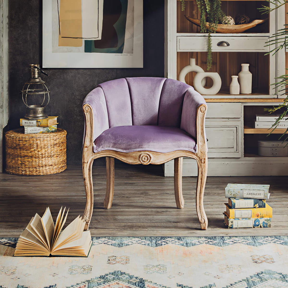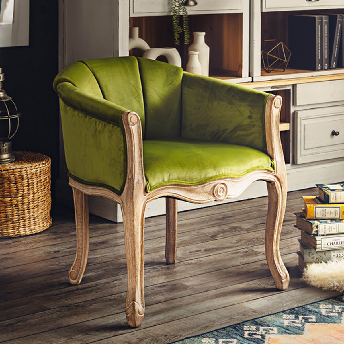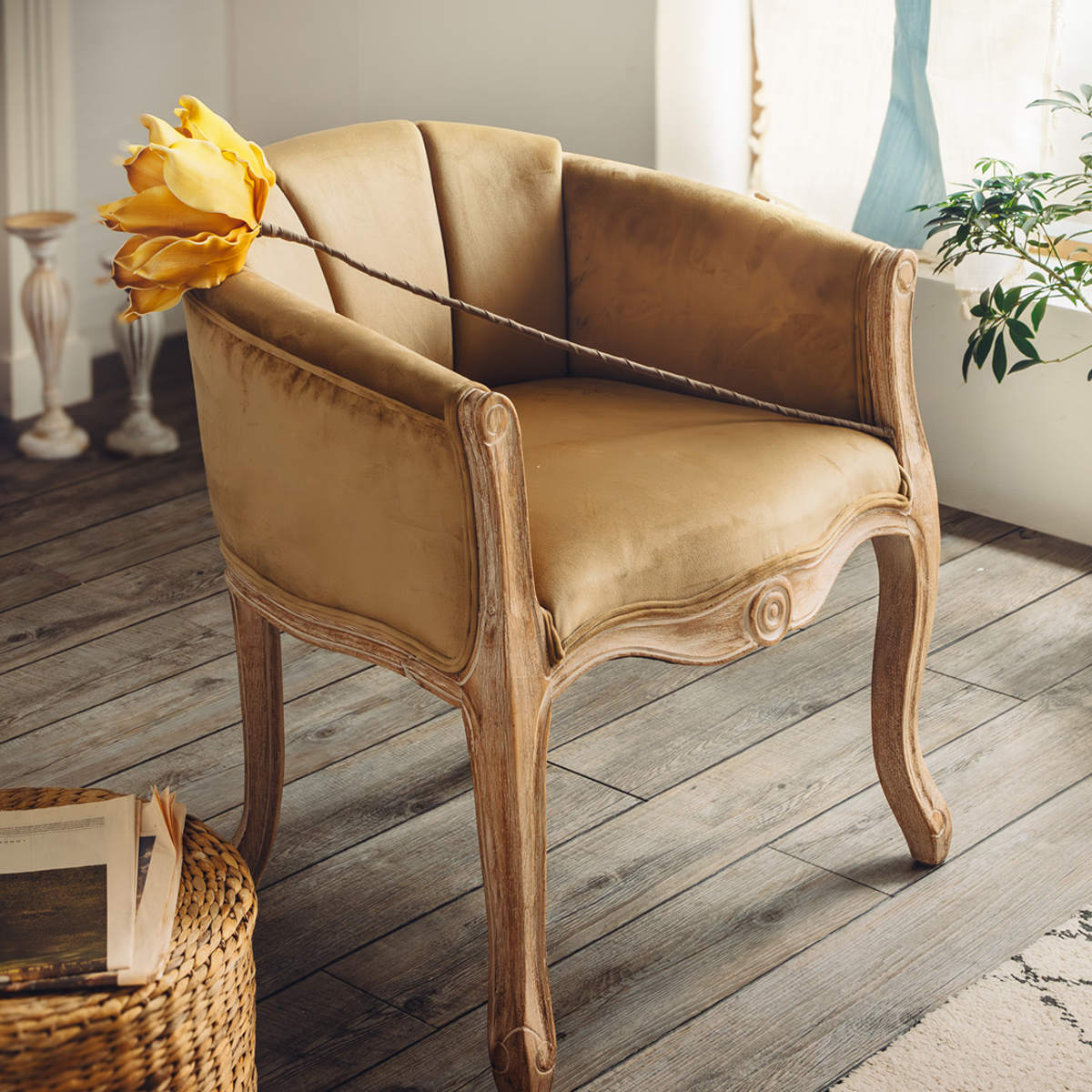 脚部にはラバーウッドを採用し、使い込まれたようなヴィンテージ感のある木目や色合いに仕上げています。 また、ゆるやかなカーブを描いた猫脚のデザインがクラシカルで上品な印象です。