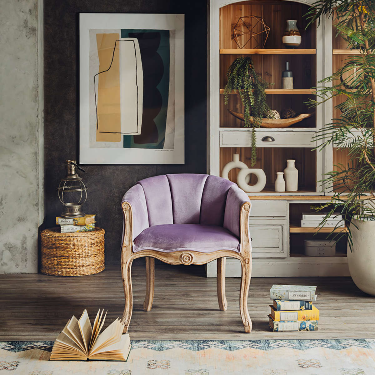 曲線を描くフレームと、包み込まれるようなフォルムが印象的なラウンジチェア。 どこか懐かしさを感じさせるデザインが、空間に温もりと落ち着きをもたらします。
