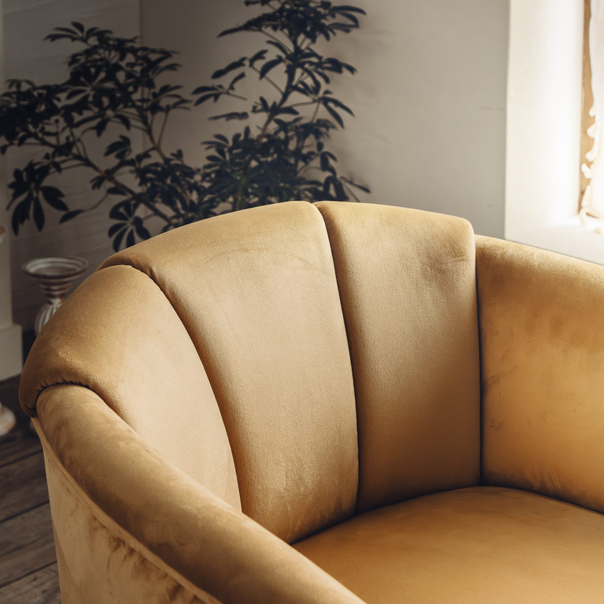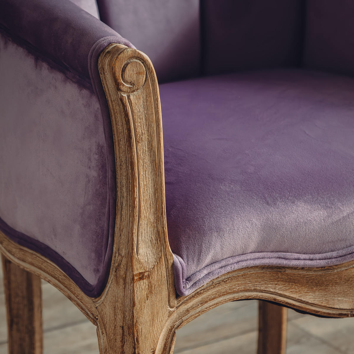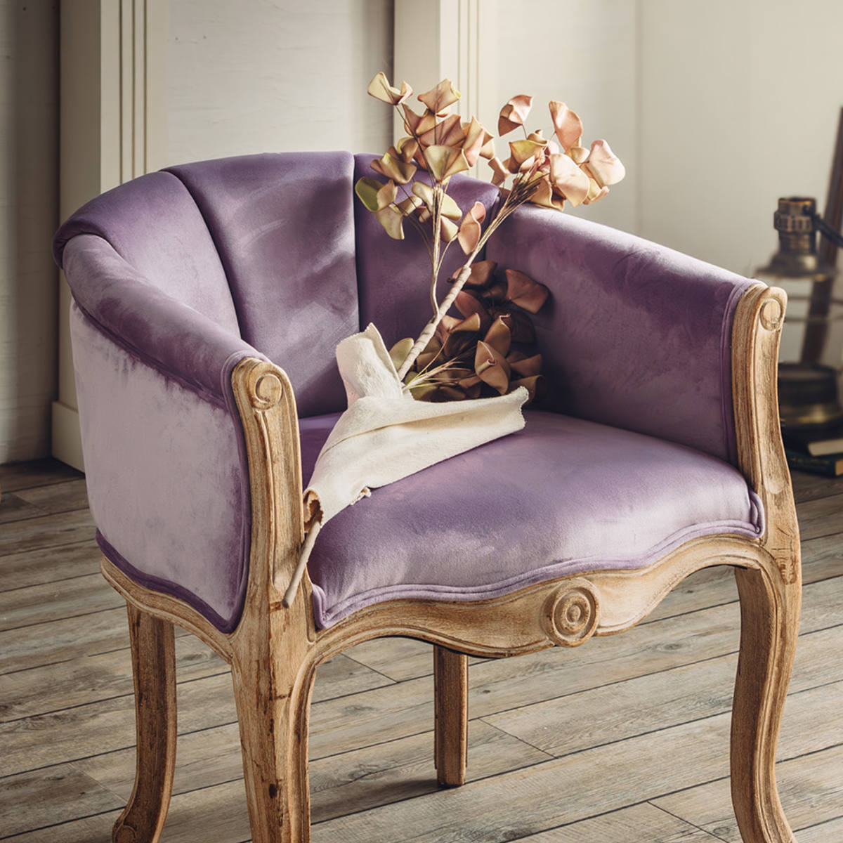 繊細な起毛が美しいポリエステル製ベロア調生地。陰影のある表情が、上質で落ち着いた雰囲気を演出します。