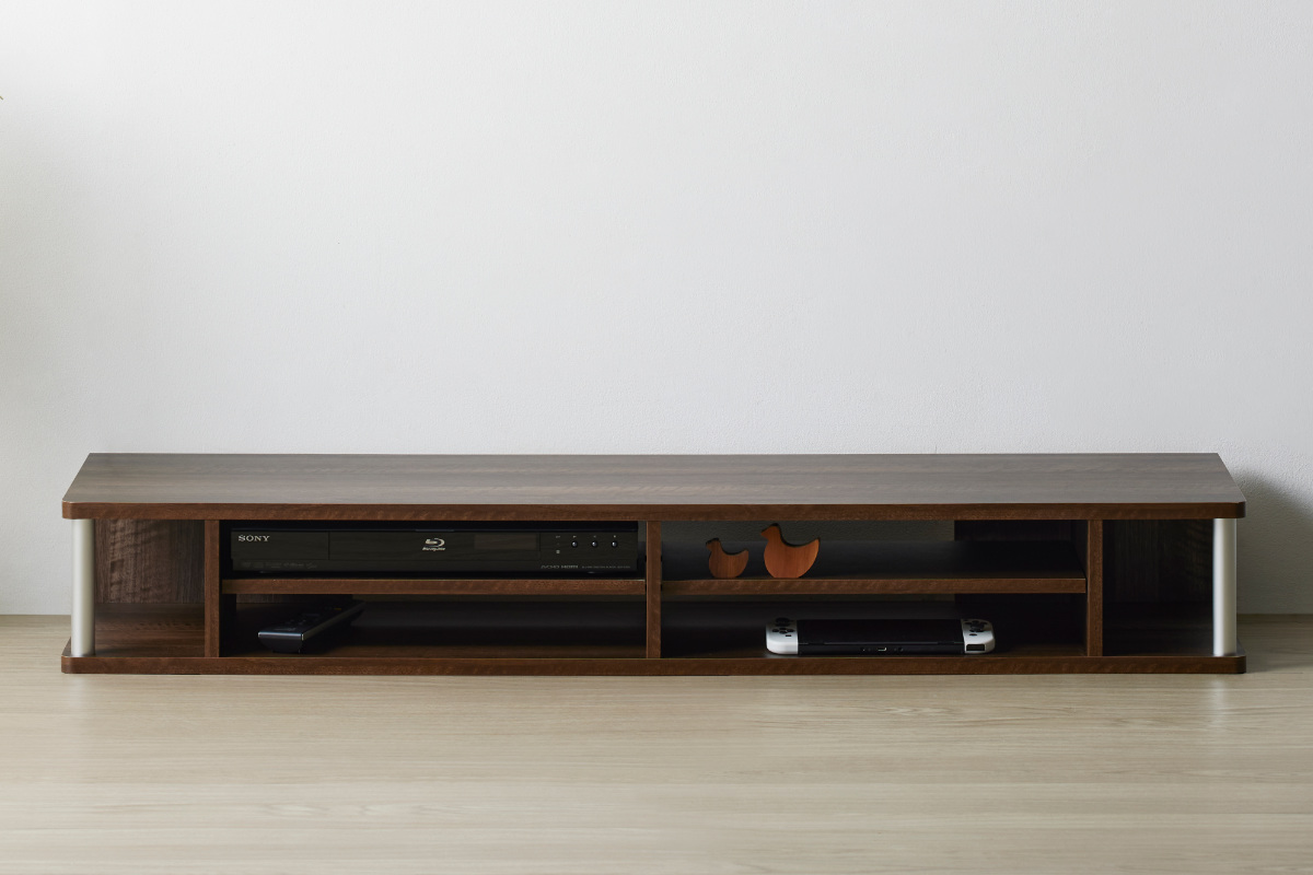 もう少し収納スペースが欲しい時や、ディスプレイの高さを出したい時に便利なちょい足しラックです。2段タイプで収納力が高く、左右のスペースにはリモコンや小物をすっきり収納できます。棚板は取り外しが可能です。