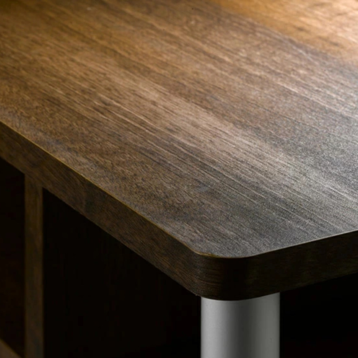 木目の質感をリアルに再現しながら、傷が付きにくく水にも強い素材を使用しています。落ち着いたブラック・ブラウンカラーの2色展開で、お部屋の家具に合わせやすいデザインです。