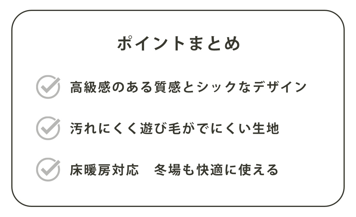 目の詰まったループ状の糸で出来た生地なので、遊び毛も出にくいので、掃除機をかける際やお洗濯の時にも細かな糸くずのゴミが少なく快適です。