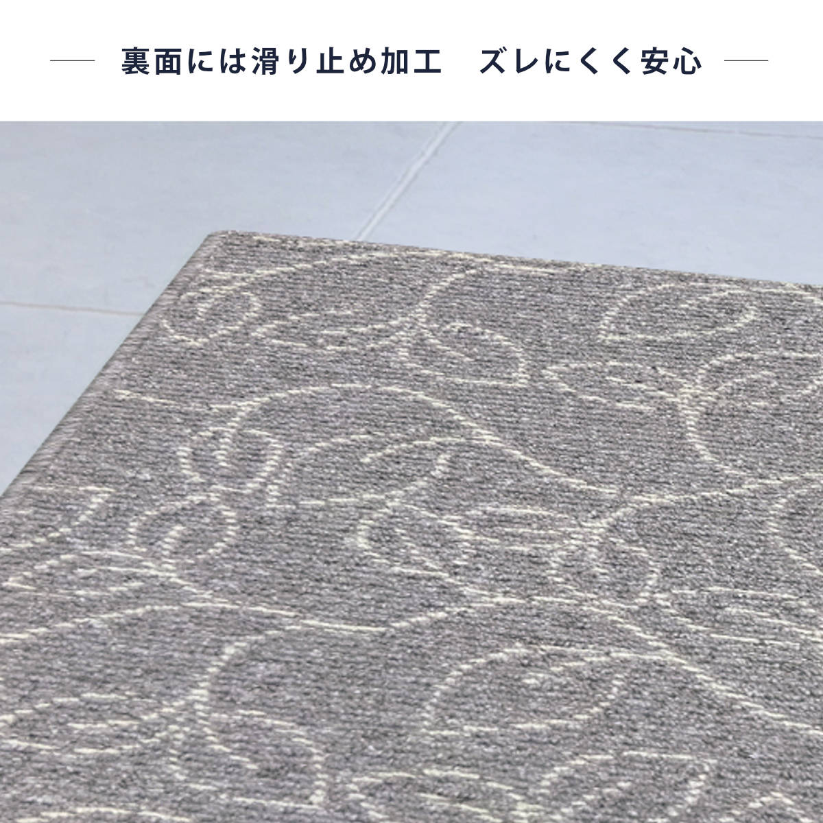 マット裏面にはすべりにくい加工を施しているため、ズレにくく安心です。