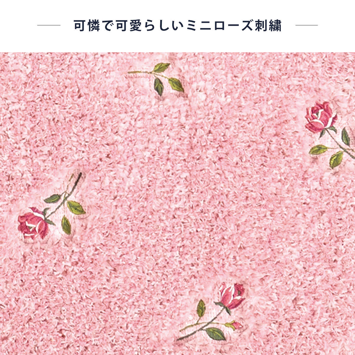 ふんわり優しいローズピンクのトイレマット(約80×60cm)です。風水におけるミニローズは「決断力を上げる」「悪い運気を払う」と言われており、ピンク色には恋愛運や健康運、対人運のアップが期待できると言われています。主張しすぎない美しさで日常を華やかに彩ってくれるデザインです。
