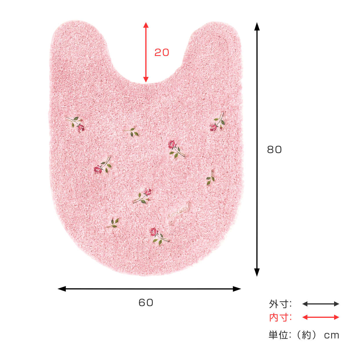 ●ふんわり優しいローズピンクのトイレマット(約80×60cm)です。