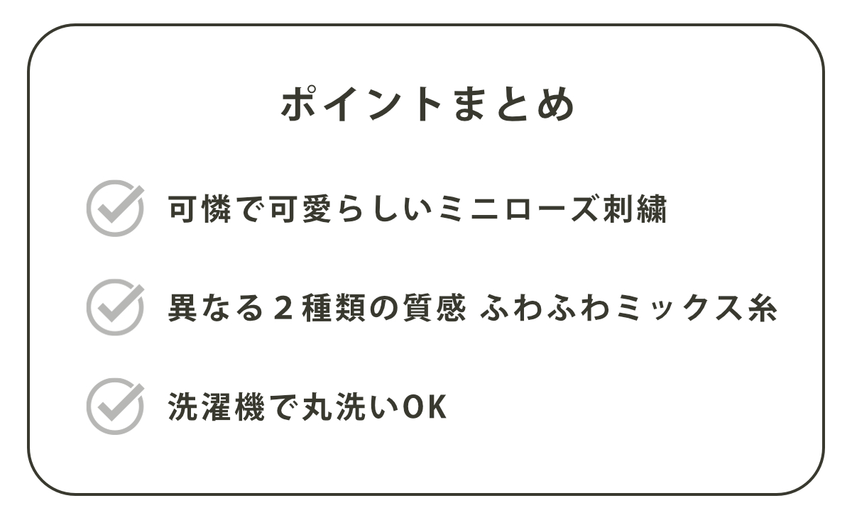 ●2種類の異なる質感の糸をミックスすることで、ふわふわとした優しい肌ざわりです。