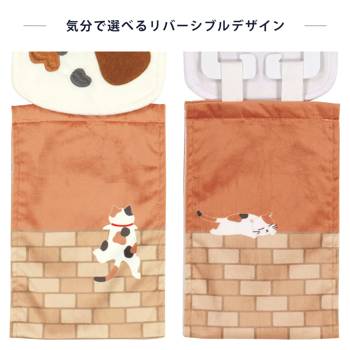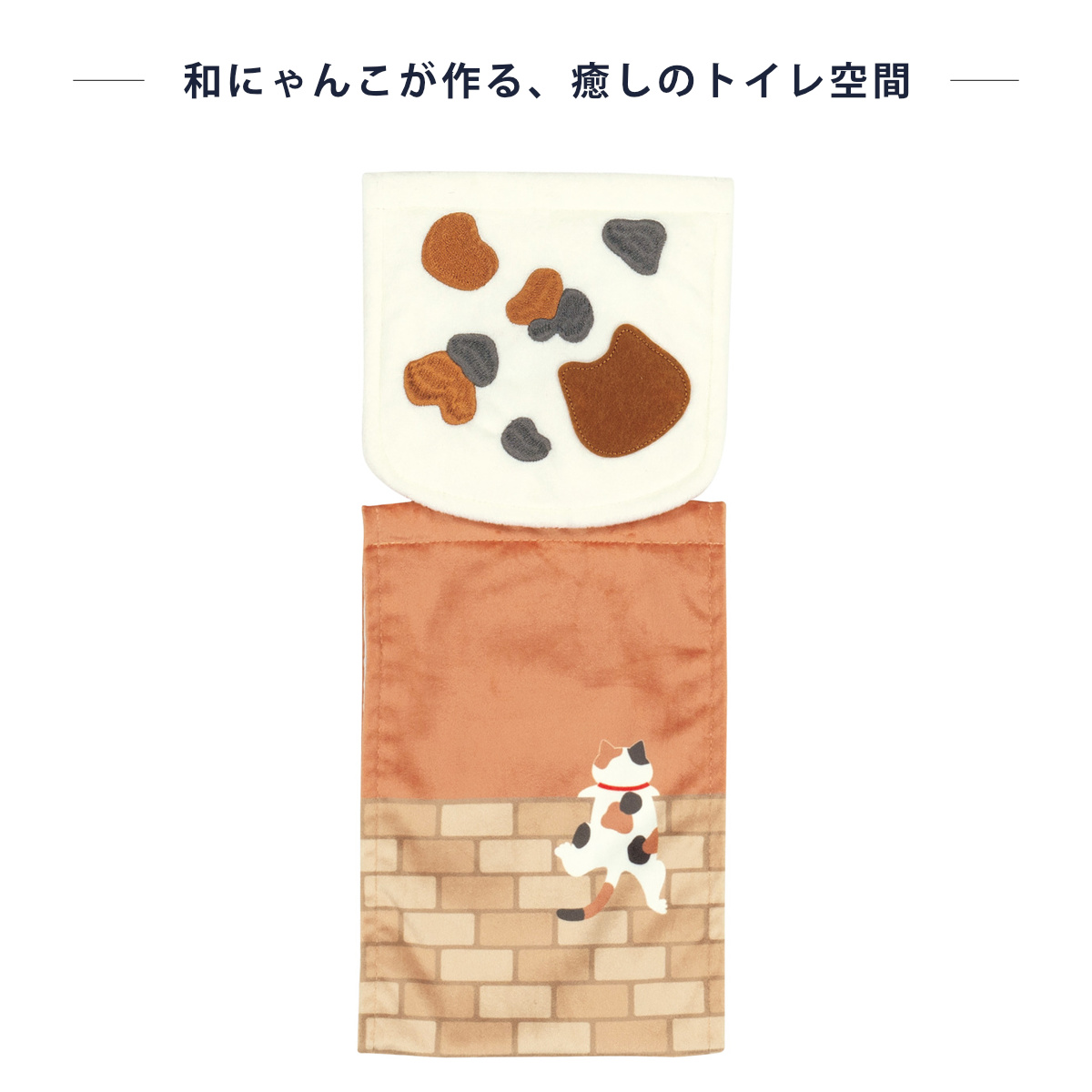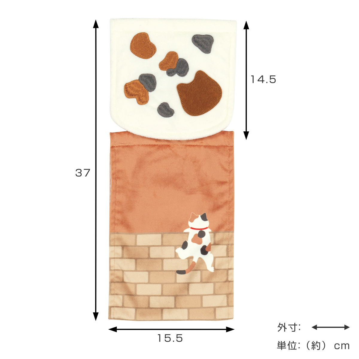 天真爛漫な可愛らしい和にゃんこに癒される、ペーパーホルダーカバーです。フラップ部分には刺繍とアップリケでミケ猫のまだら模様が表現されており、遊び心のある楽しいデザインです。