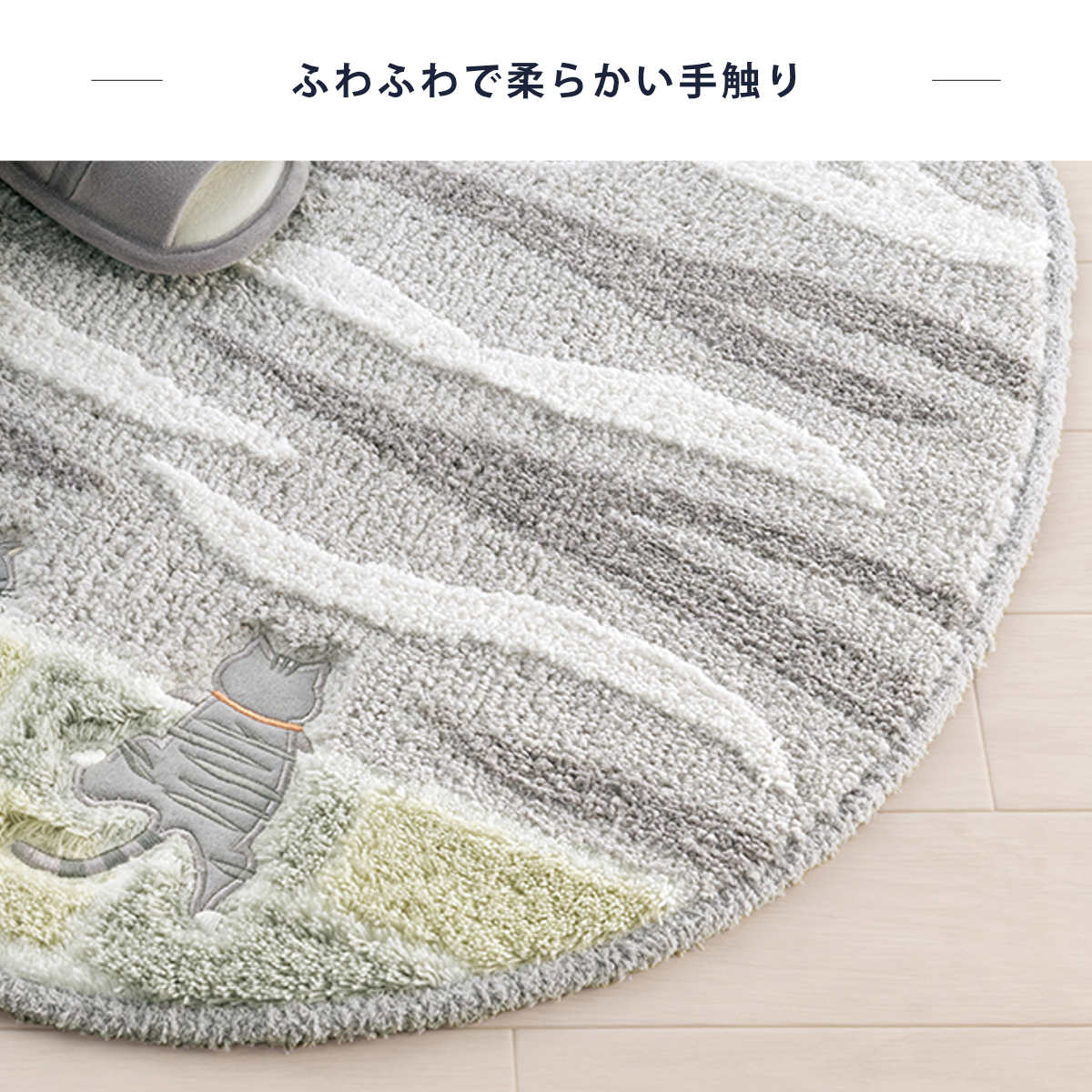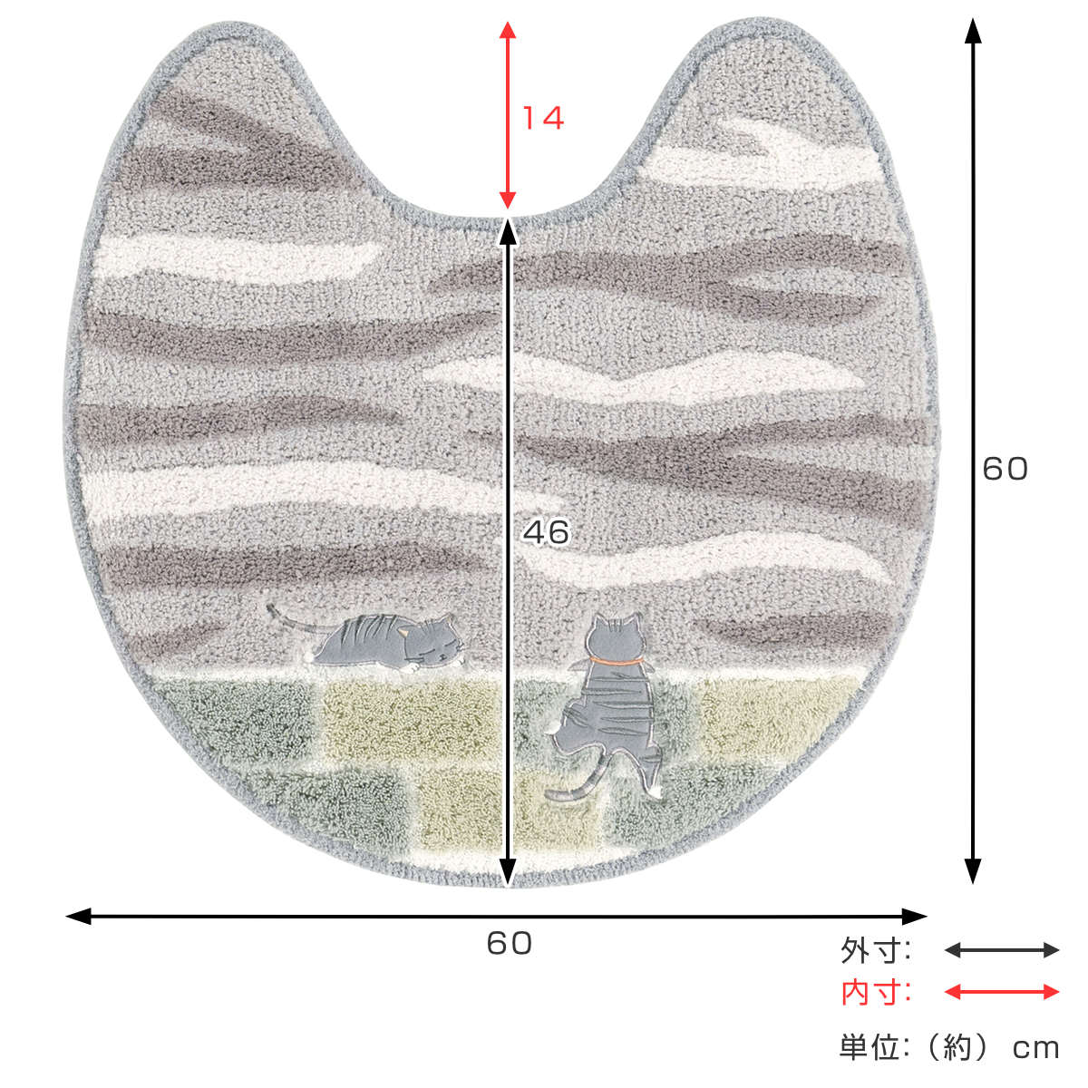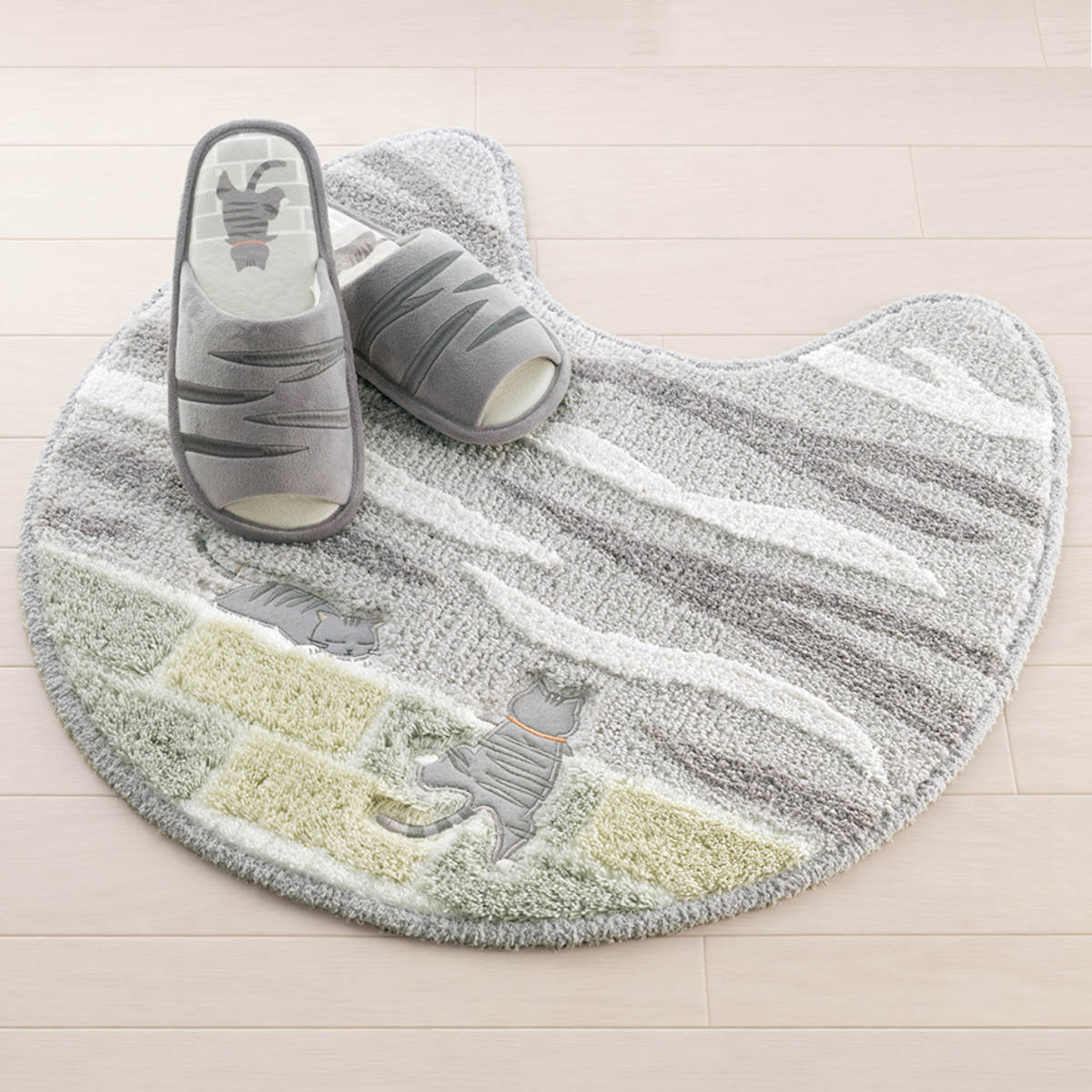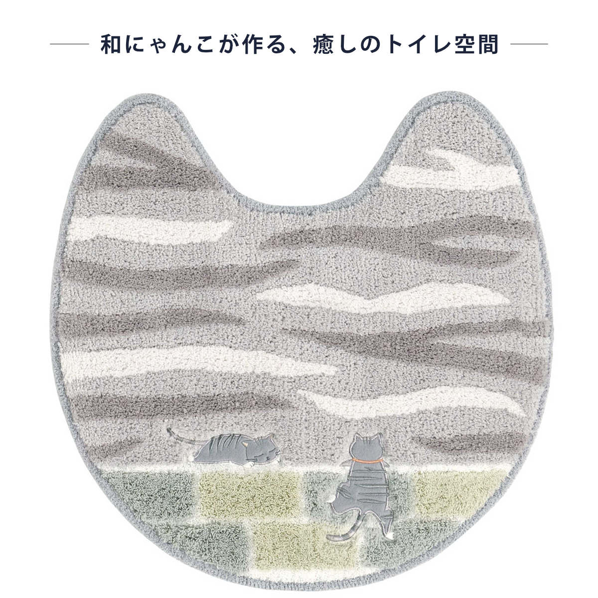 天真爛漫な可愛らしい和にゃんこに癒されるトイレマットです。マイペースに過ごすサバトラたちをアップリケ刺繍で表現した遊び心のある楽しいデザインです。