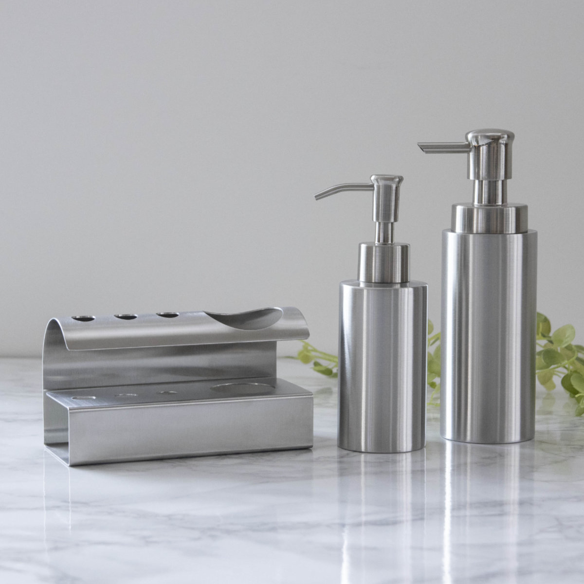 同シリーズで揃えることで、洗面まわりに統一感が生まれます。無駄のないステンレスの佇まいが空間をスッキリと見せ、清潔感のある印象に。