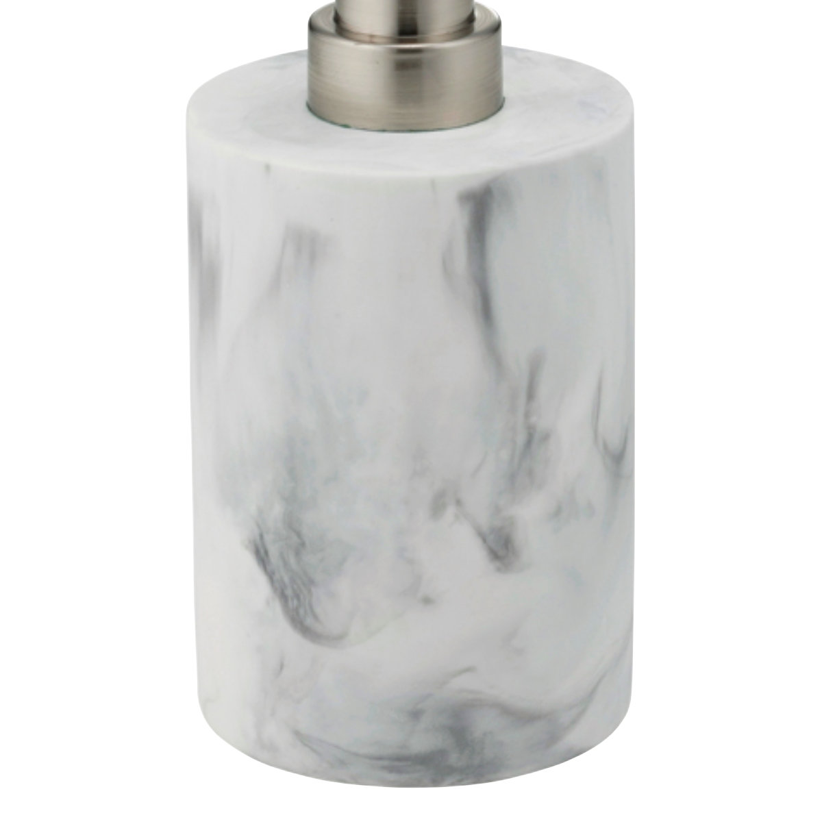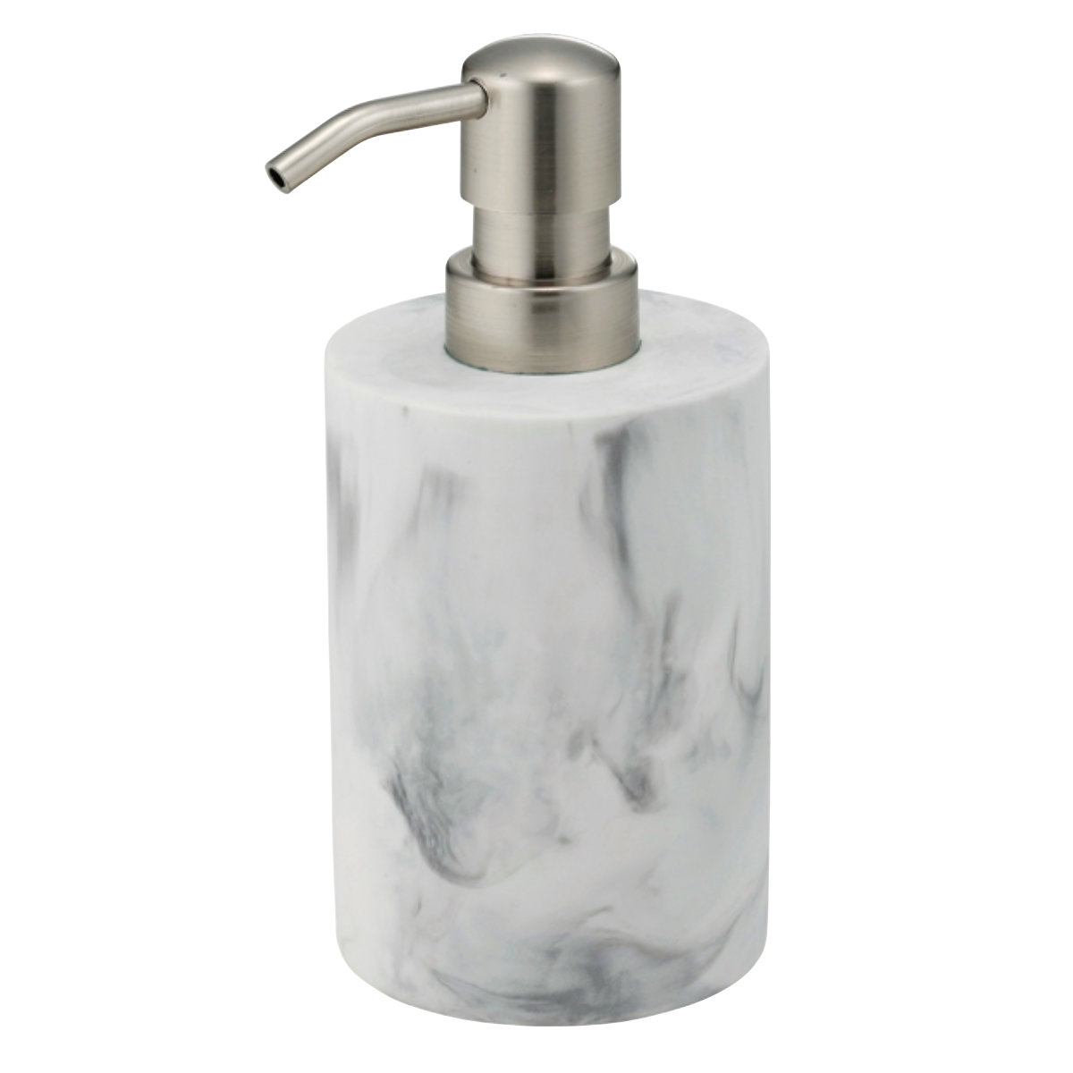 やわらかなマーブル模様が印象的なソープディスペンサーです。落ち着いた色合いと艶を抑えたステンレスポンプが調和し、洗練された雰囲気を演出します。