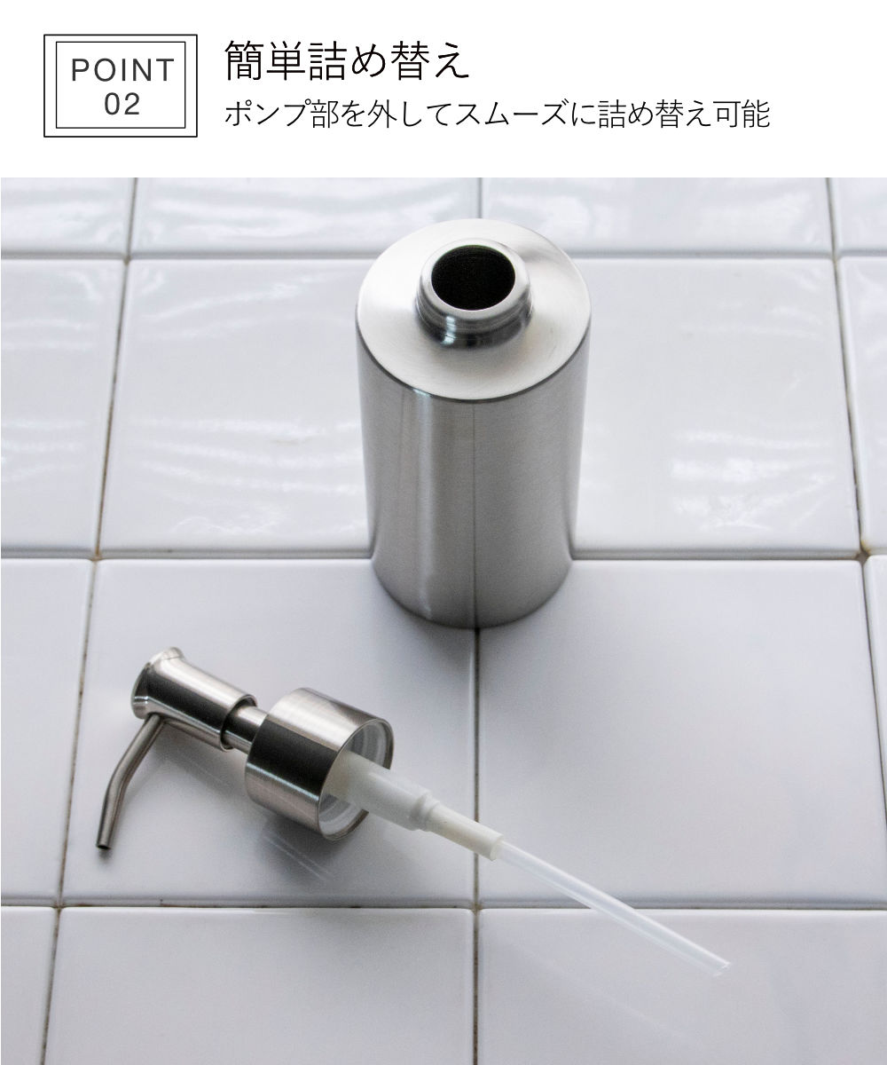ポンプ部を外して注ぐだけの簡単詰め替えなので、手間なく気軽に補充できます。
