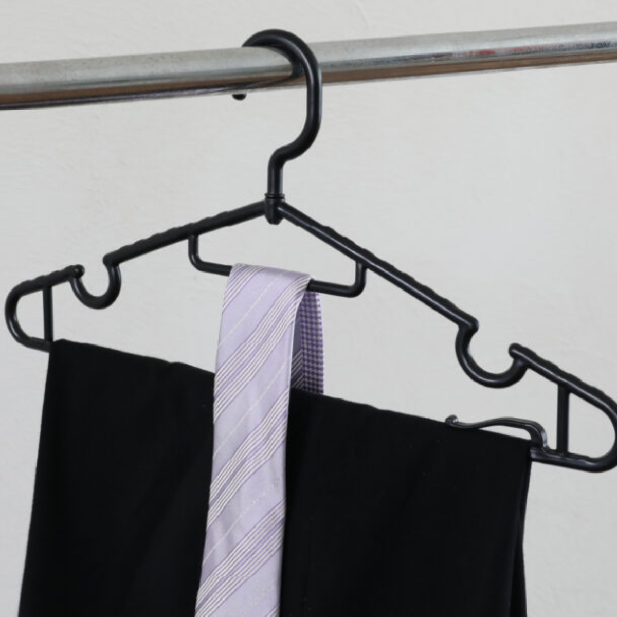 本体にはネクタイ掛けと肩紐掛けが付いています。キャミソールやインナー、スカーフなども干しやすく、1本のハンガーで複数の役割を果たしてくれます。