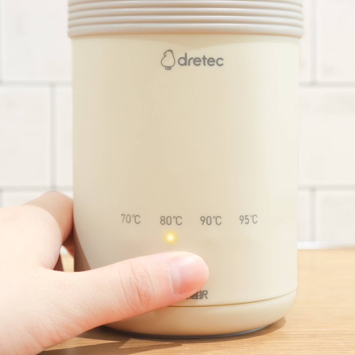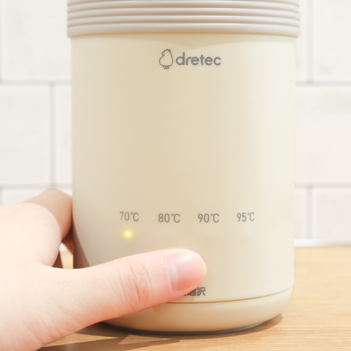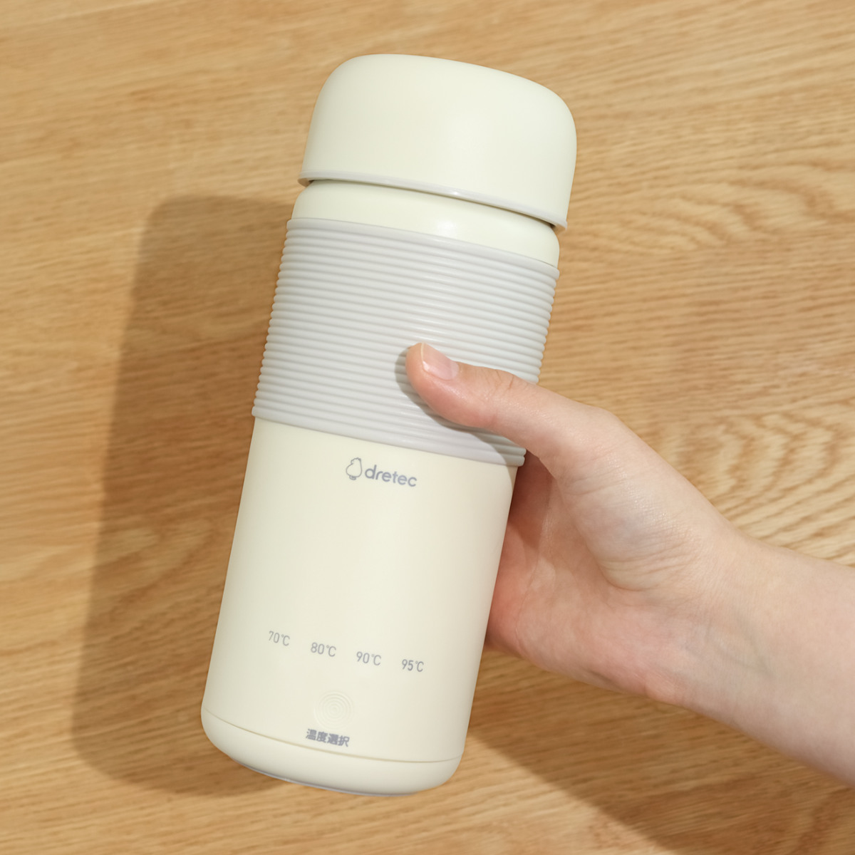 ちょっとお湯が欲しい時にちょうどいい、少量から沸かせる温調ボトルです。温度は70・80・90・95度で沸かすことが可能です。お茶や紅茶、ミルクなど、それぞれの飲み物に最適な温度で沸かせます。