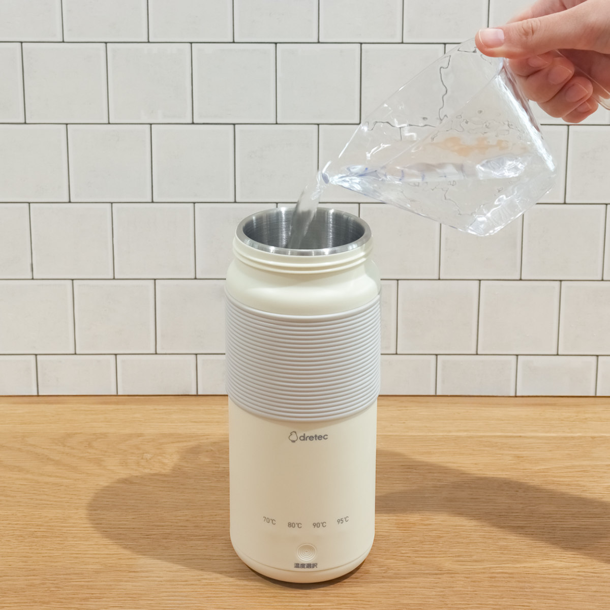 ●お出かけ先でひとり分のお湯が手早く沸かせる、便利な温調ボトルです。