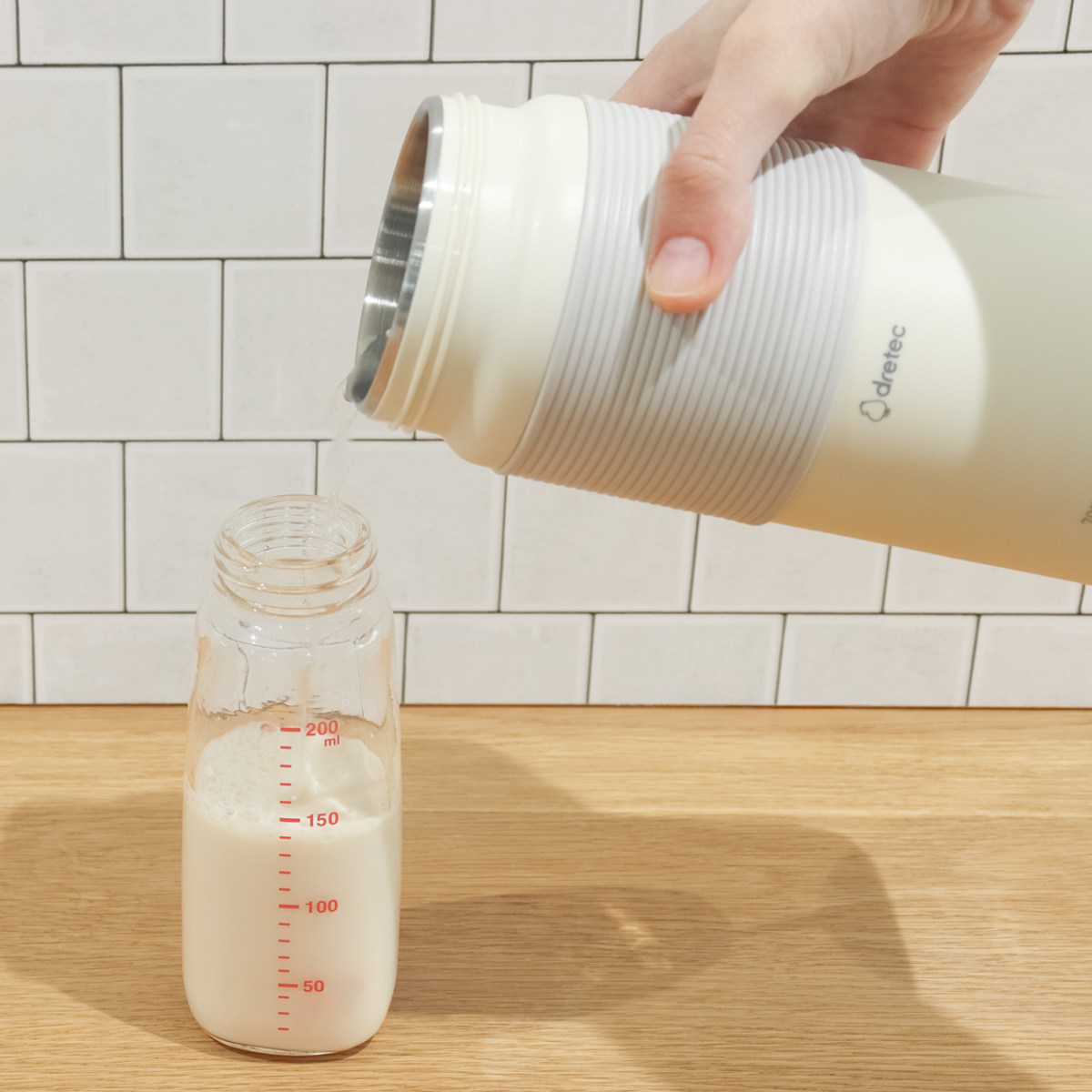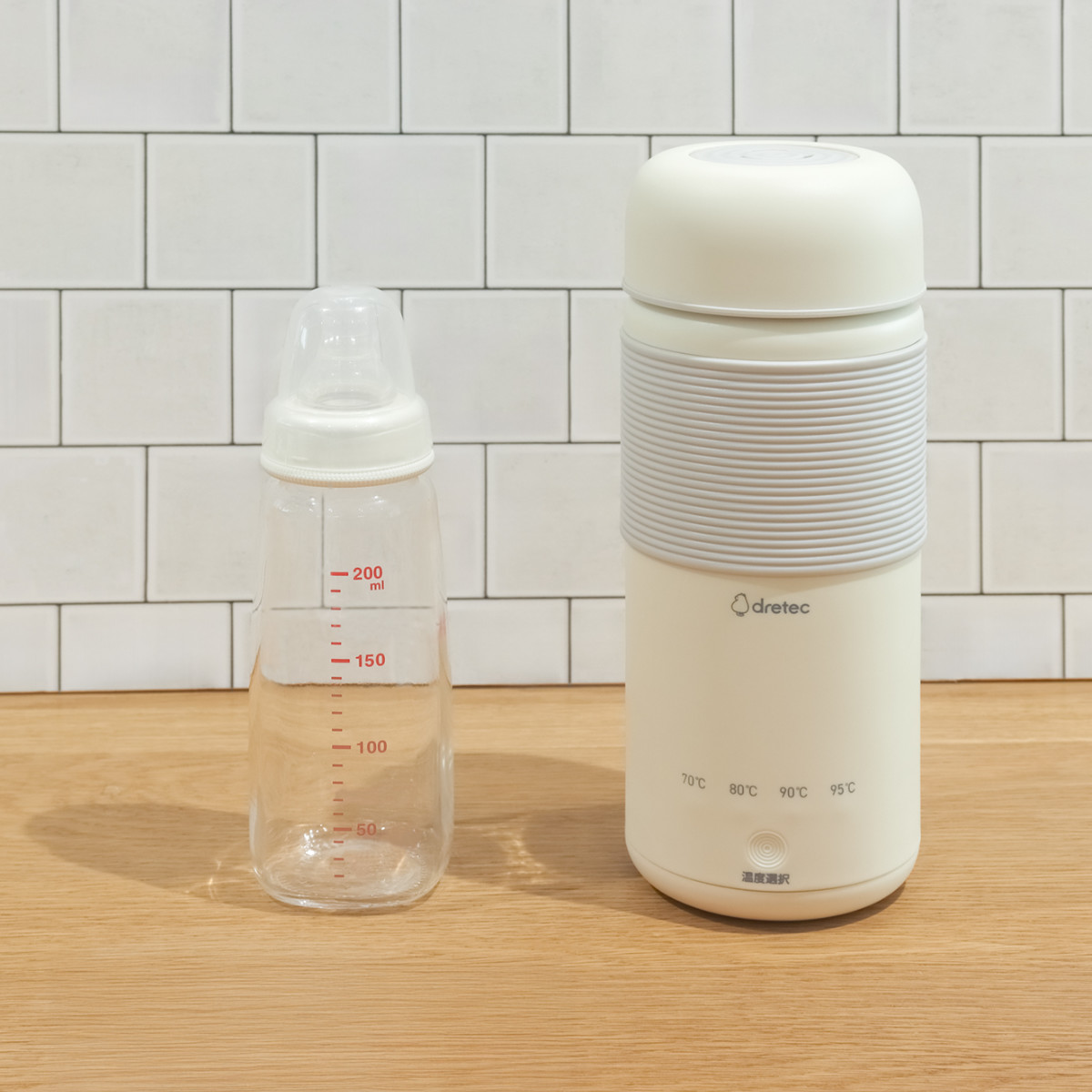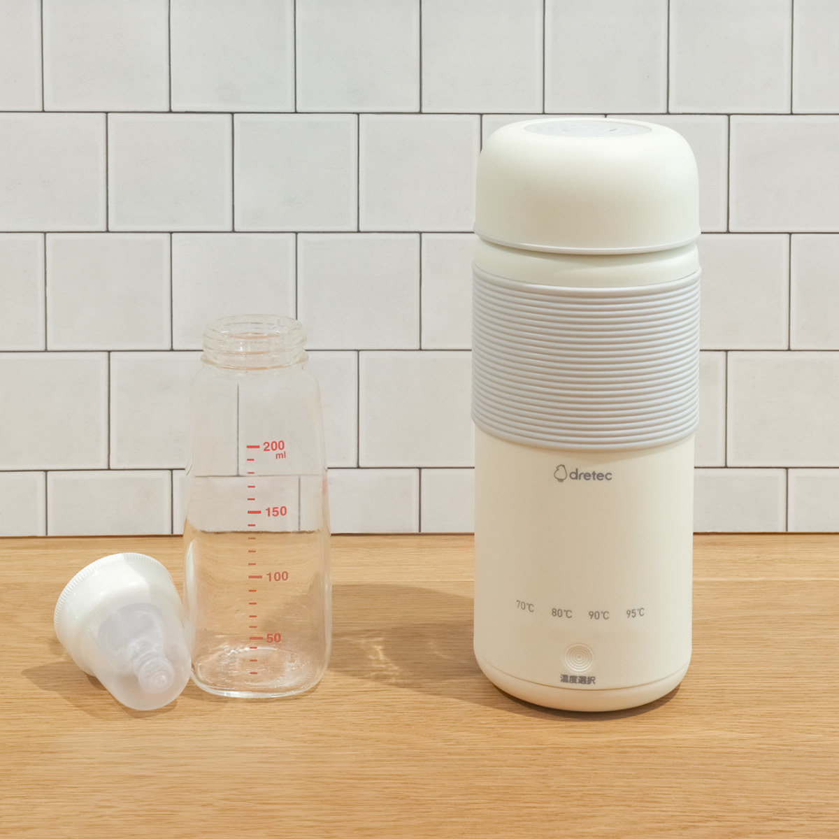 出張先や旅行先、外出先での赤ちゃんのミルク作りや入院時など、様々なシーンで活躍します。水筒のようなスタイリッシュな形状なのでリュックやキャリーバッグにも入れやすく、気軽に持ち運べます。