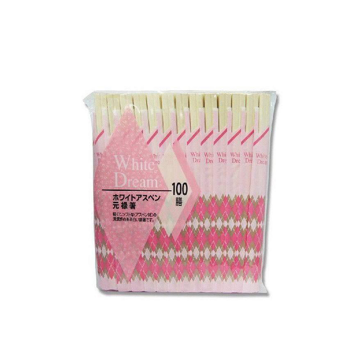 軽くソフトな歯ざわりが特徴のホワイトアスペンの割り箸、100膳入りです。