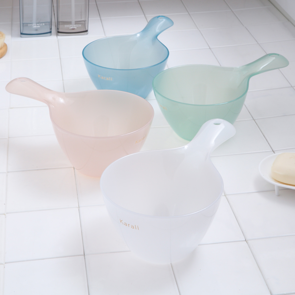 美しいデザインだけでなく扱いやすさを考えたバスシリーズ「カラリ」の手桶です。フチがフラットになっているので汚れや水分がフチに残らず、短時間で乾燥させることができます。ムダな継ぎ目もないため、お手入れが簡単です。