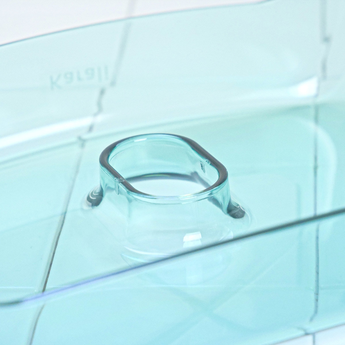 透明な素材が最大限美しく見えるように内側の形状にもこだわりました。裏側に凹凸がないため汚れが溜まりにくく、簡単にお手入れができます。