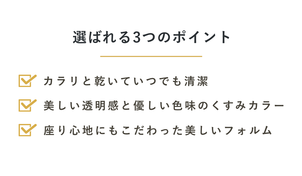 機能の良さを生かし、透明素材の美しさを追求した「カラリ」シリーズ。シリーズで揃えることで高級感のある空間へと演出してくれます。