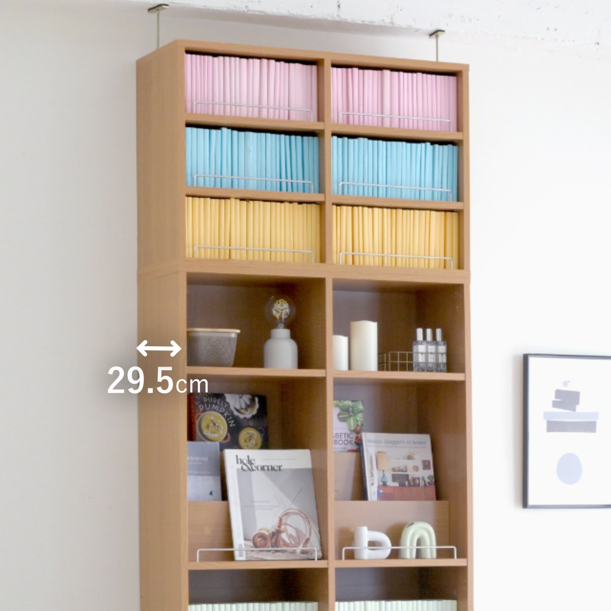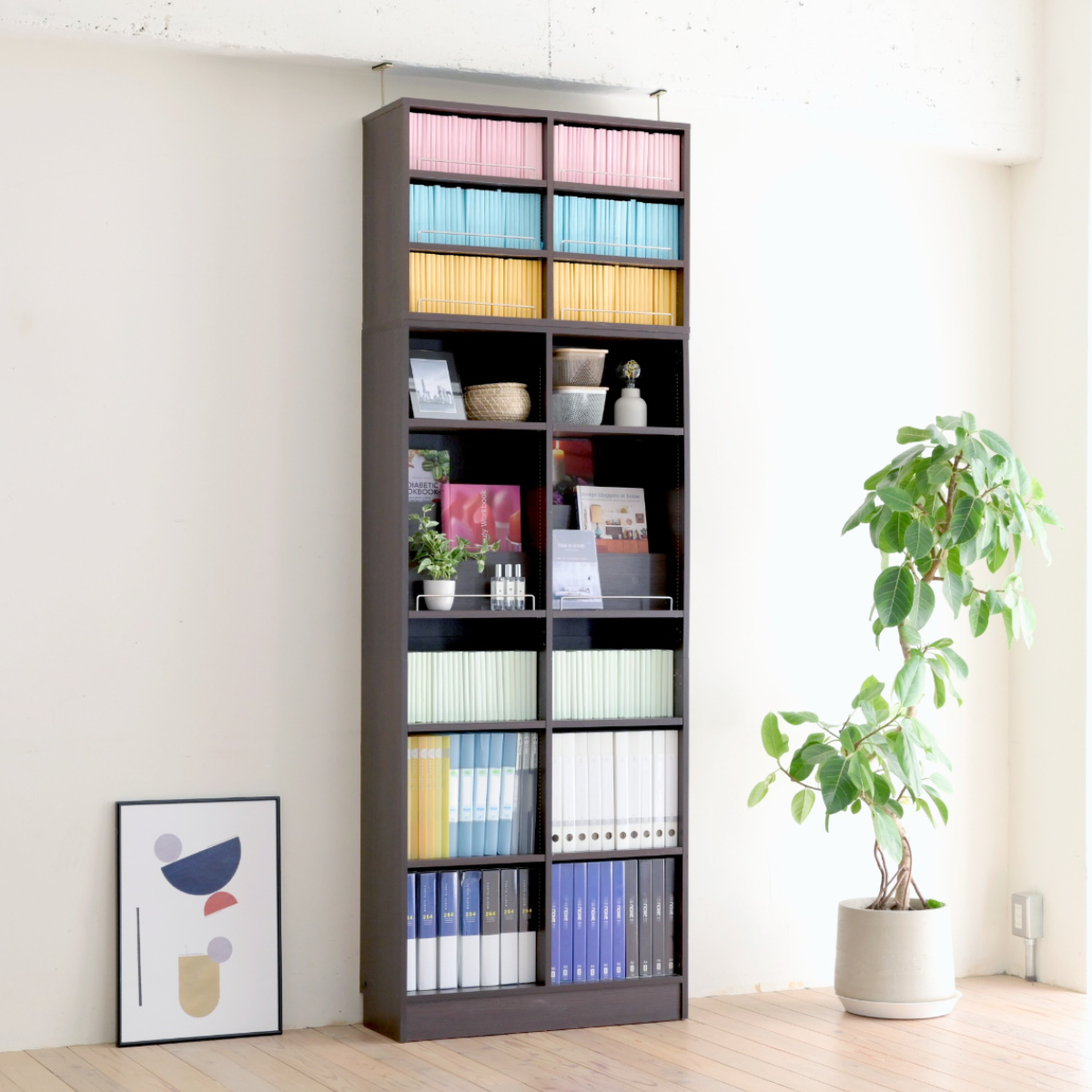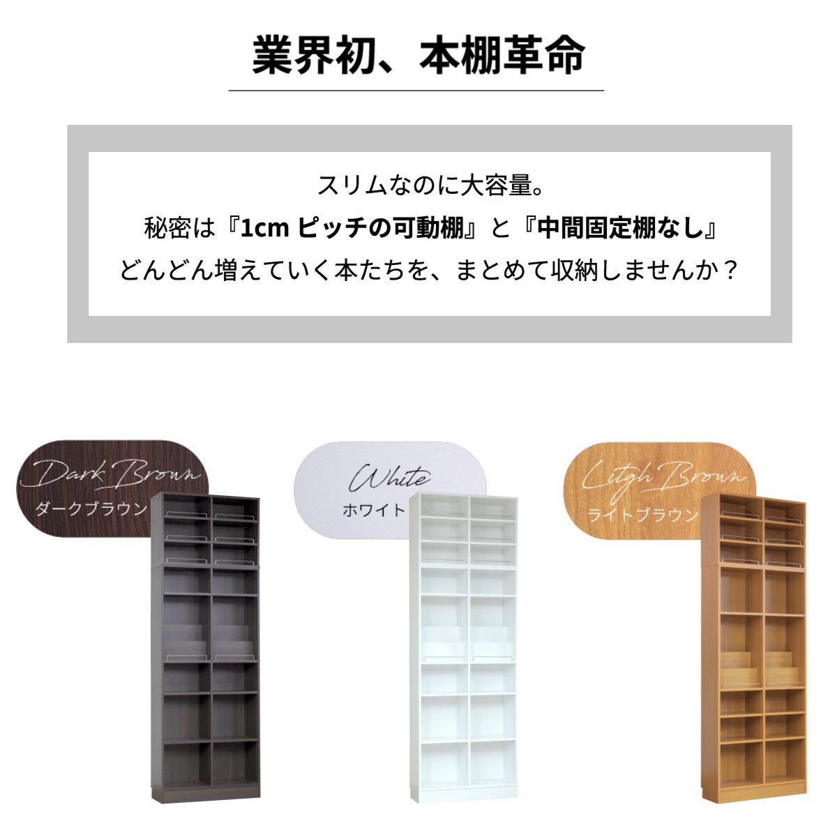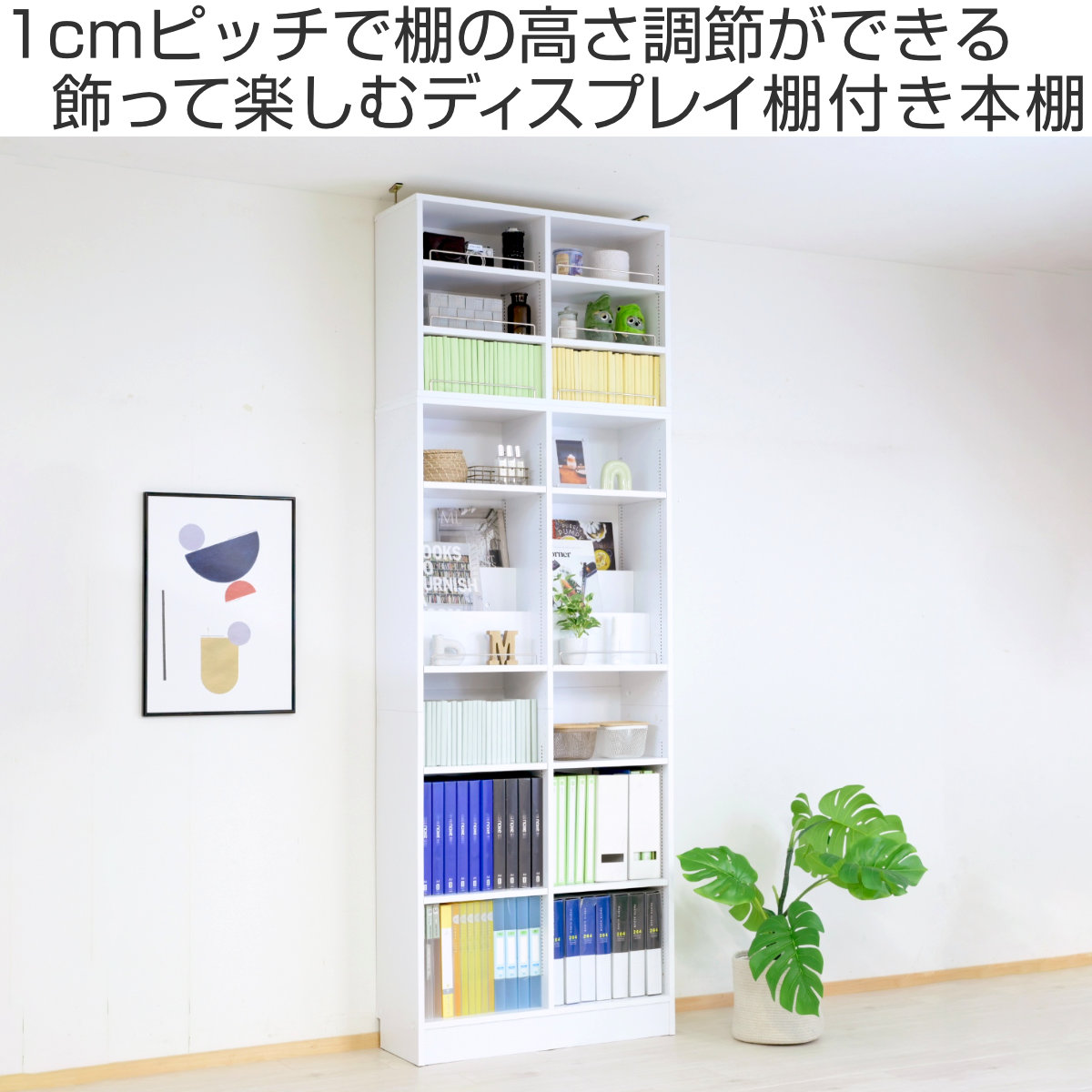 1cmピッチで棚の高さ調節OK!「飾る」と「しまう」ができる本棚