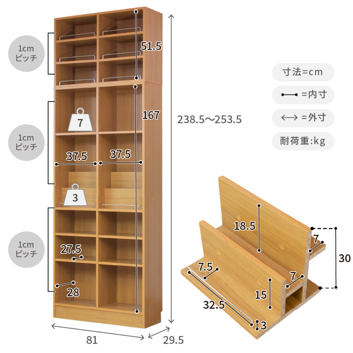 - 約幅81×奥行29.5×高さ238.5~253.5cm