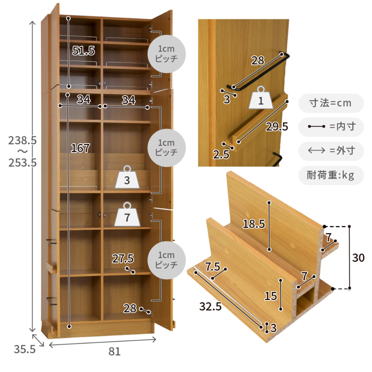 - 約幅81×奥行35.5×高さ238.5~253.5cm