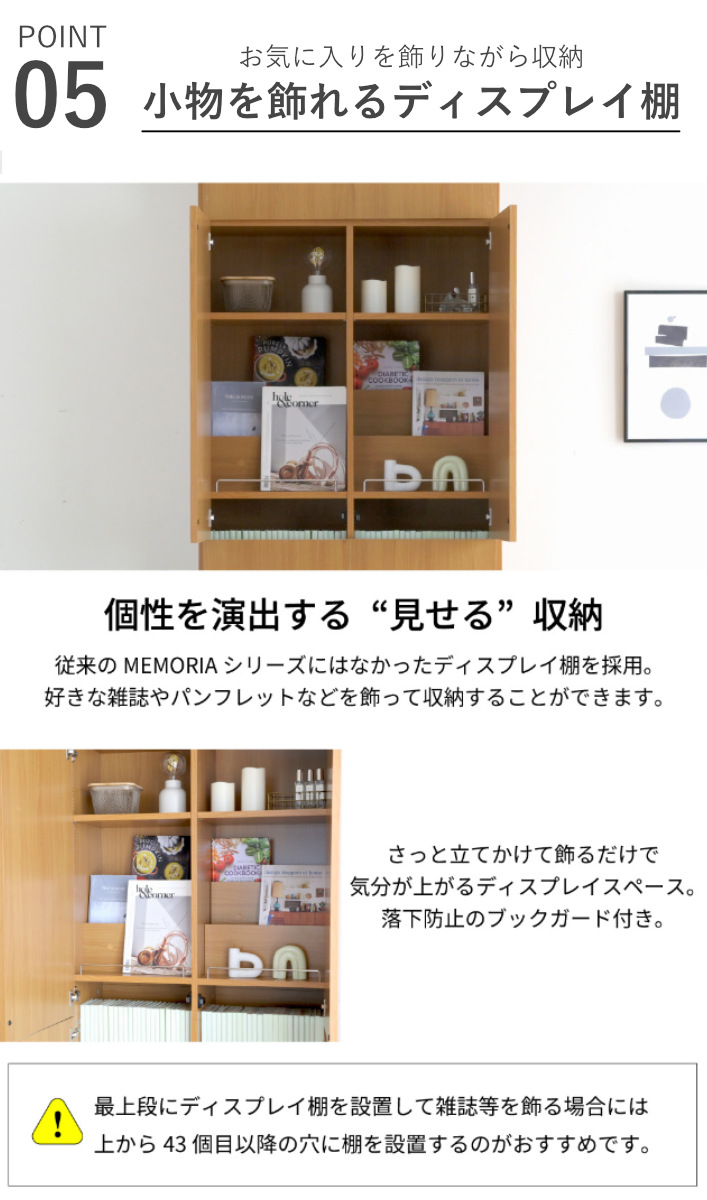 | 耐荷重 | 飾り棚:3kg ディスプレイ扉:1kg |