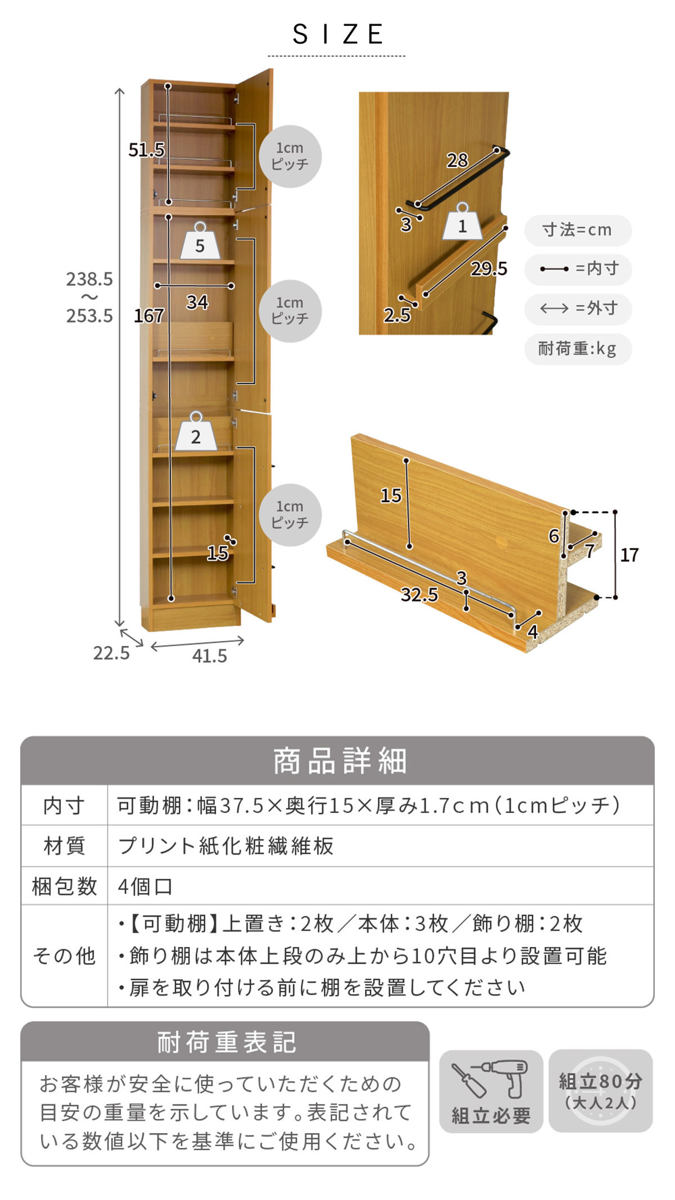 - 約幅41.5×奥行22.5×高さ238.5~253.5cm