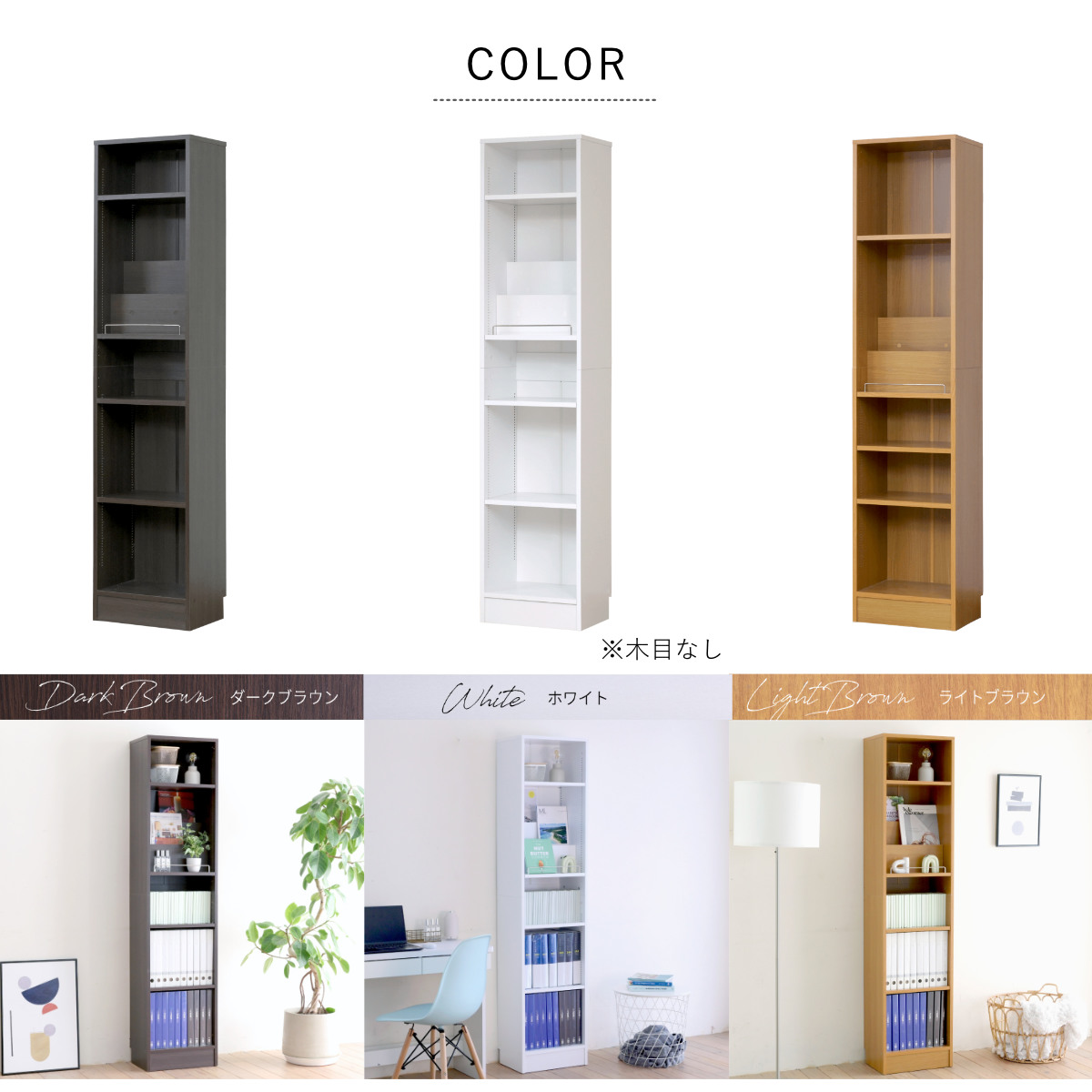![]() オープン本棚 幅41.5cm(A4対応) 【▲このページの商品】 | ![]() 扉付き本棚 幅41.5cm(A4対応) | ![]() 突っ張りオープン本棚 幅41.5cm(A4対応) |