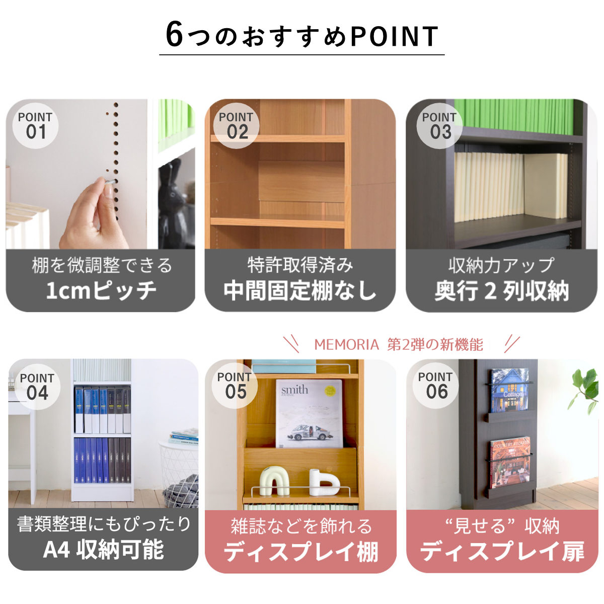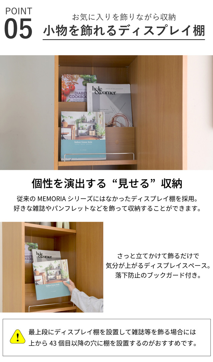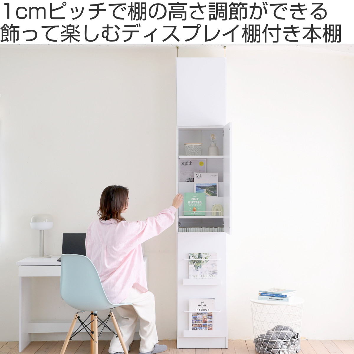 1cmピッチで棚の高さ調節OK!「飾る」と「しまう」ができる本棚