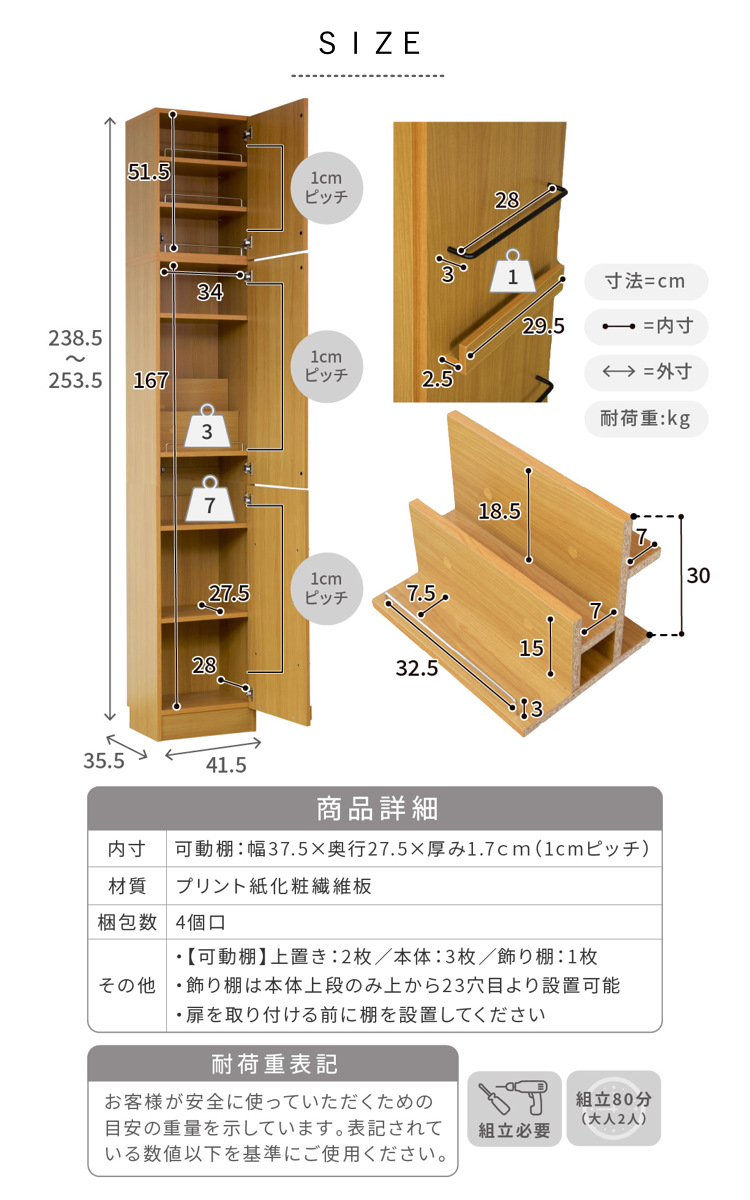 - 約幅41.5×奥行35.5×高さ238.5~253.5cm