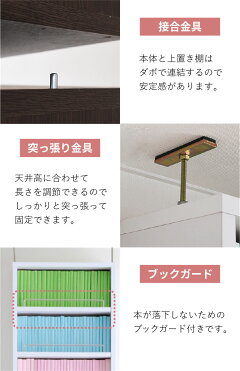 万が一の際の転倒を防ぐための金具が付属しているので、背の高い本棚でも安心です。