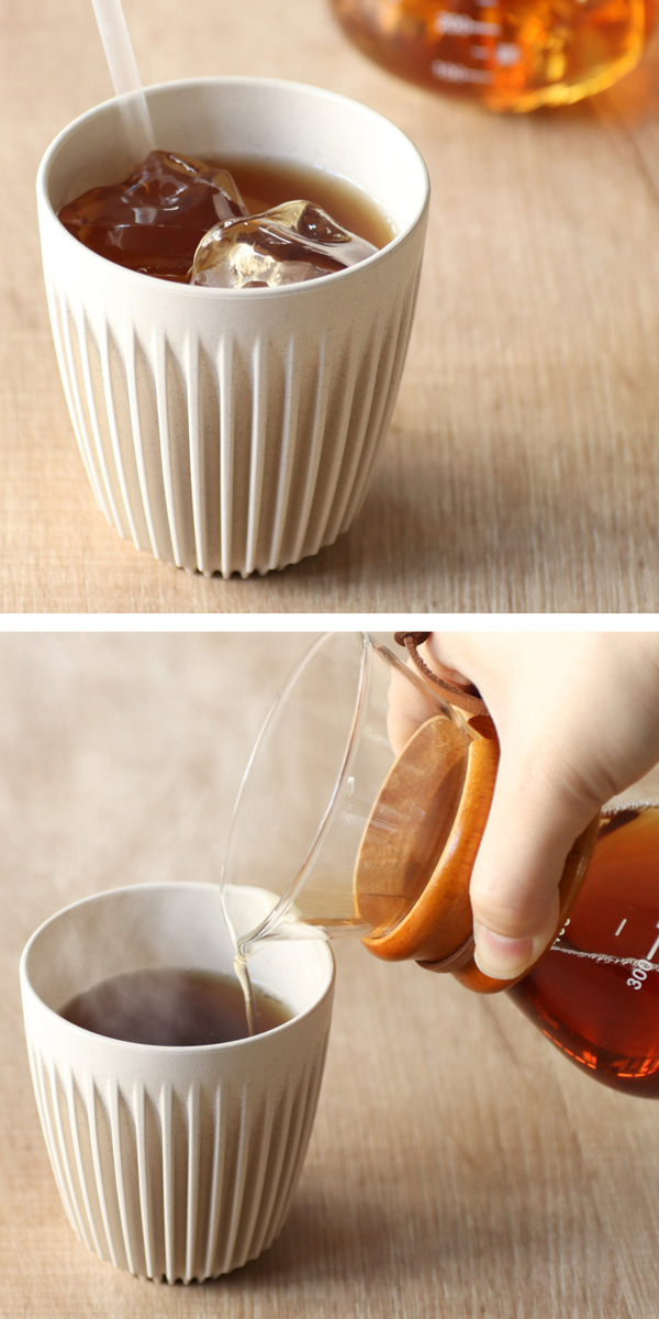 温かい飲み物も冷たい飲み物もどちらにもお使いいただけます。カップ表面に溝加工が施されているので手にとった時に熱さを感じにくい構造です。