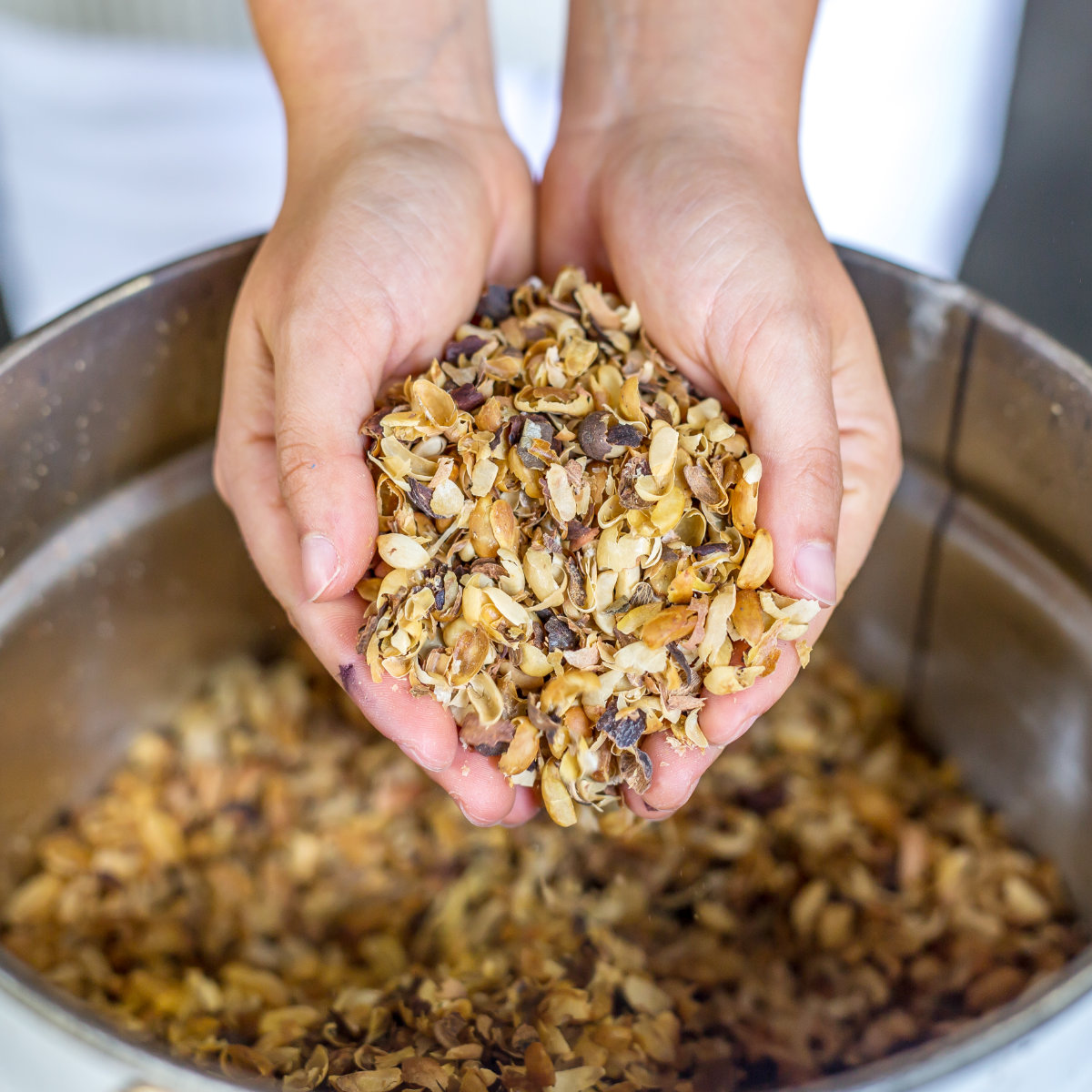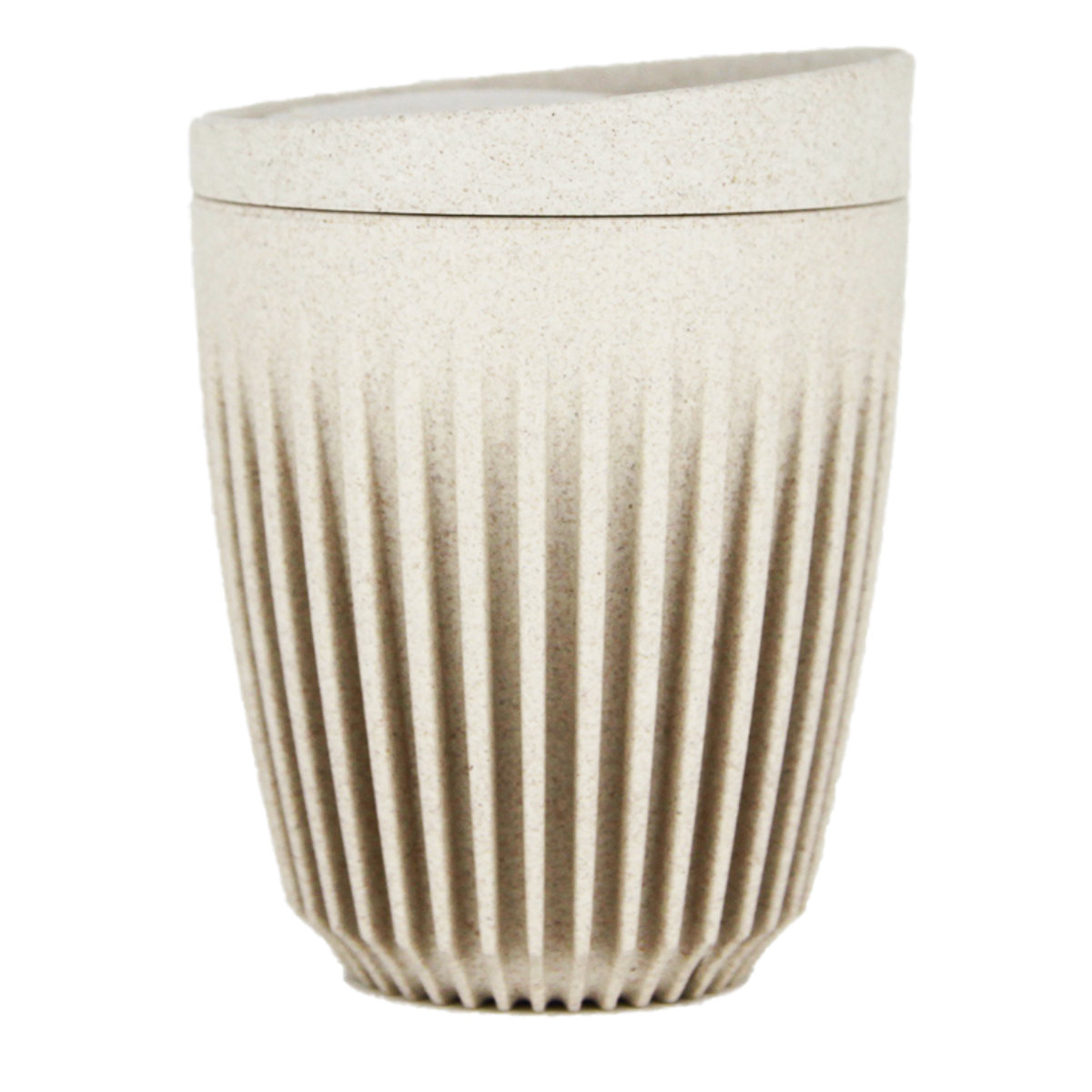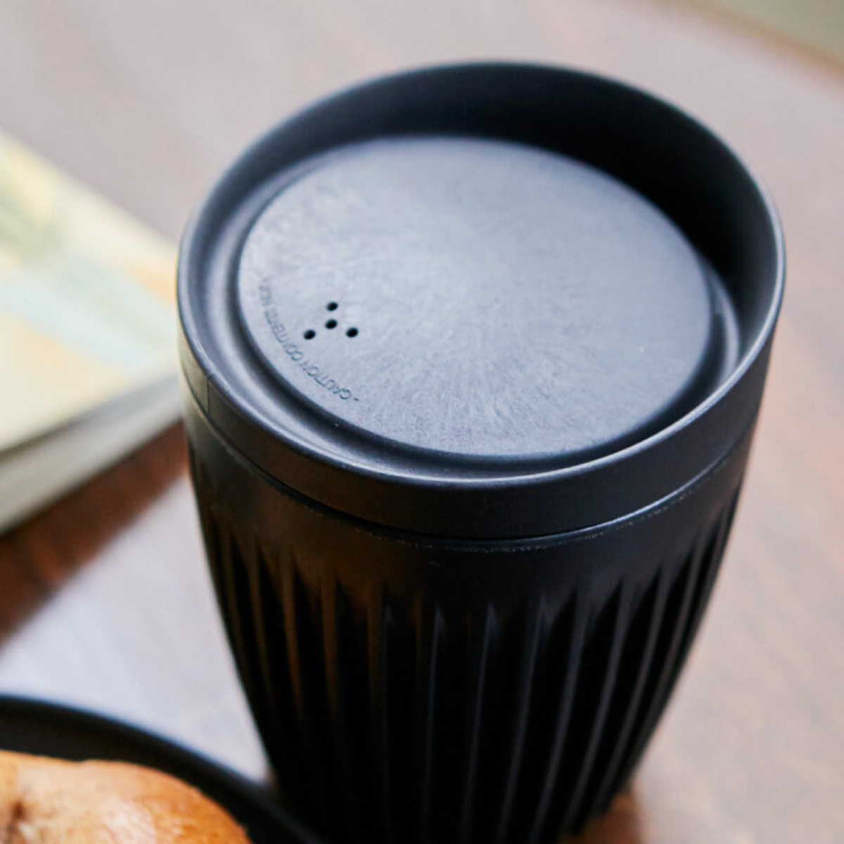 コーヒーの精製過程で出るコーヒーハスクを再利用した素材を使用したフタ付きのカップです。一人分のコーヒータイムや軽めのスープ、デザートに使うのにちょうど良く、フタをつければ持ち運びや保温・保冷も可能です。