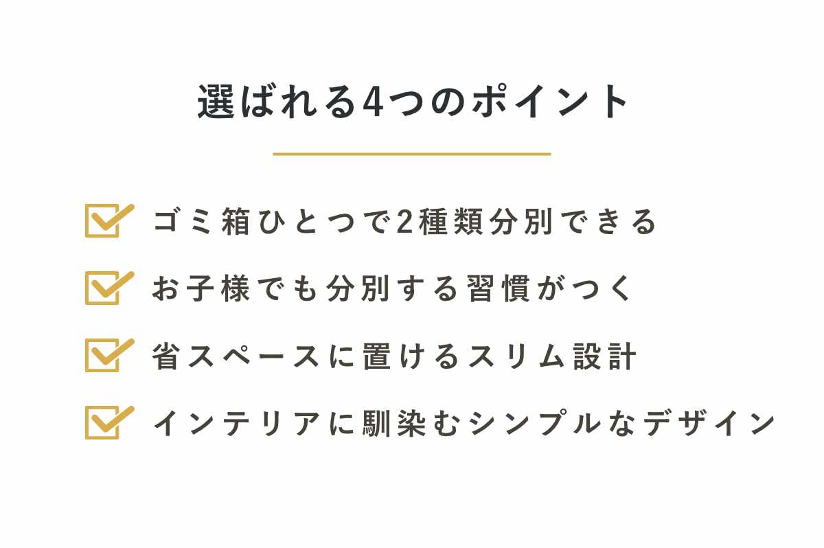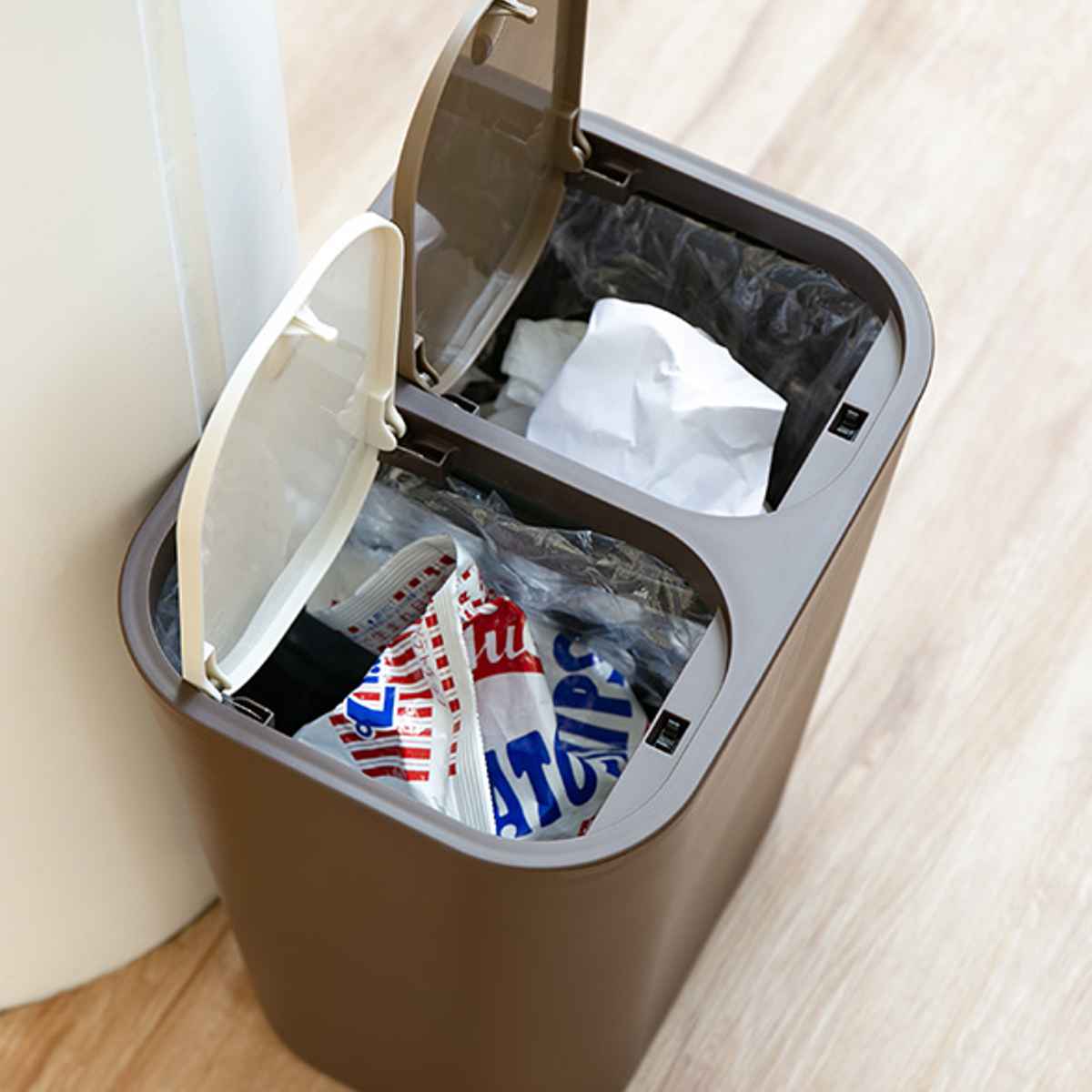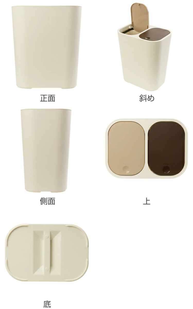 1個で最大2つの分別ができるゴミ箱です。プラスチックゴミや燃えるゴミ、種類別にゴミ箱を用意しなくてもこれ1個ですっきりと収まります。