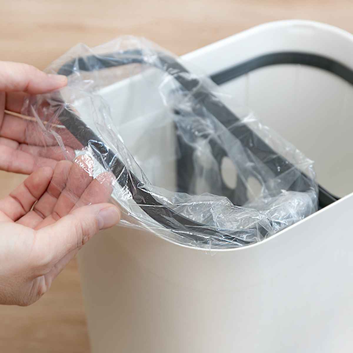 2つのゴミ袋留めリングが付属しています。袋をしっかりと固定でき、外側から袋が見えないので見た目もキレイです。最大2つまで袋をセットできます。