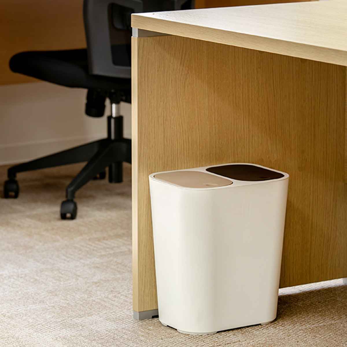 中央の仕切りは取り外して使用でき、大容量のゴミ箱と分別用のゴミ箱、シーンに合わせて使い分けられます。また、各パーツの取り外しが簡単なので洗いやすく、常に清潔さを保つことができます。