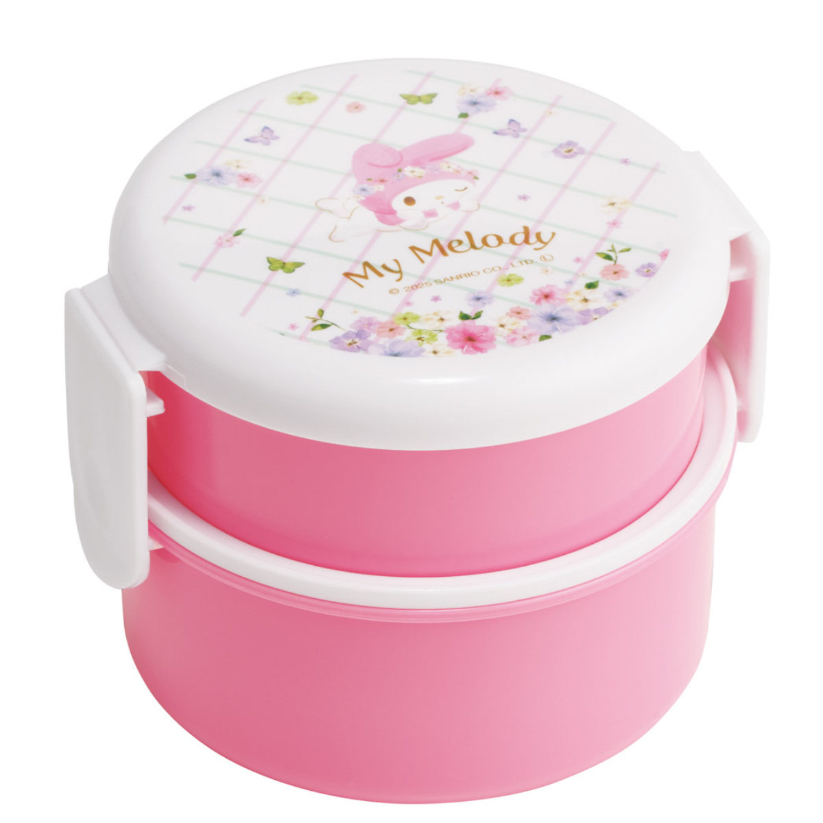 丸型の2段タイプのお弁当箱です。コンビニの丸型おにぎり1個が袋のまますっぽり入る大きさです。上段下段とも、ごはんがつきにくい「くっつかない加工」が施されています。汚れが落ちやすく、洗いやすいので、毎日のお手入れもラクチンです。