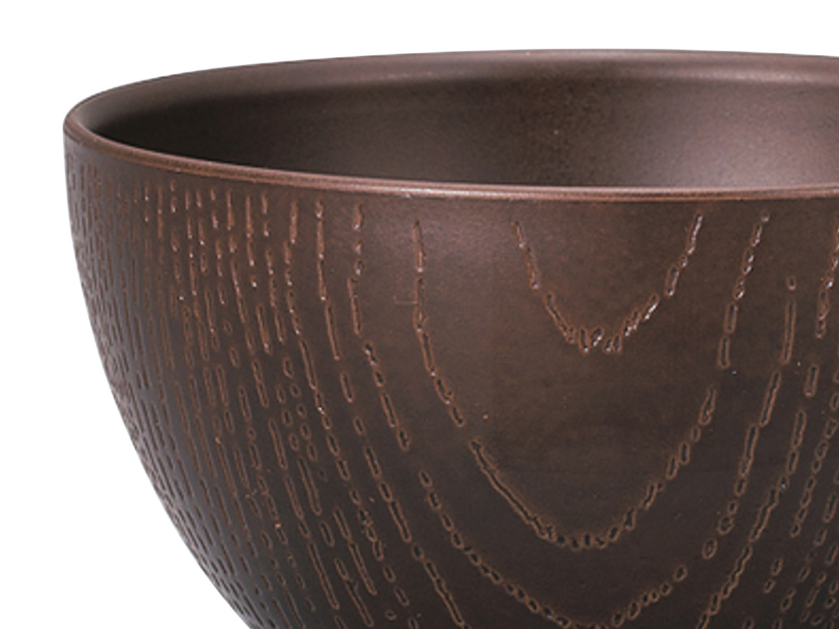 器の外側には木目調のデザインが施されています。食卓に馴染みやすく、温かい雰囲気に包まれるような、ぬくもりを感じられるデザインです。