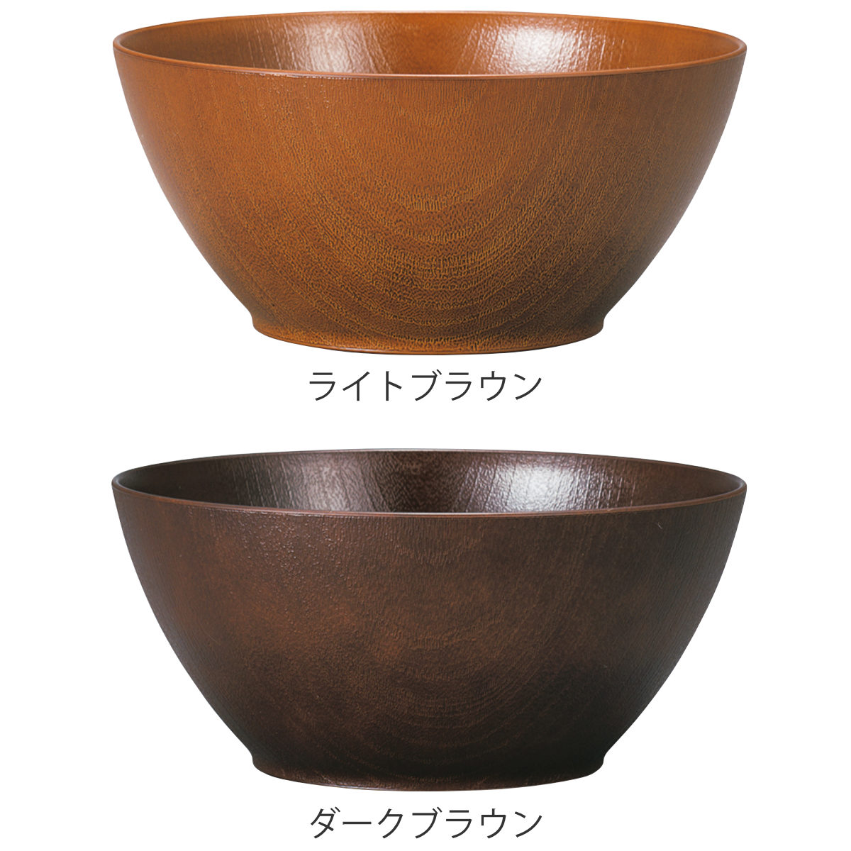 樹脂製で軽くて割れにくいボウルです。ナチュラルな木目調が魅力で、普段使いにぴったりです。サラダやシリアル、汁物、煮物など幅広くお使いいただけます。