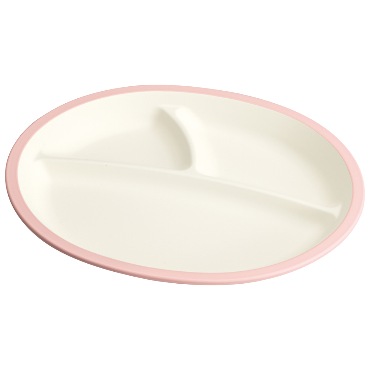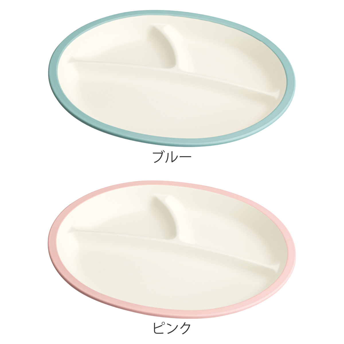 やわらかなパステルカラーがかわいいお子様用の小判仕切りプレートです。表面には抗菌加工を施しているため、細菌の増殖を抑え、毎日の食事を衛生的にサポートします。軽くて持ちやすい形状で、初めての自分ごはんにもぴったりです。