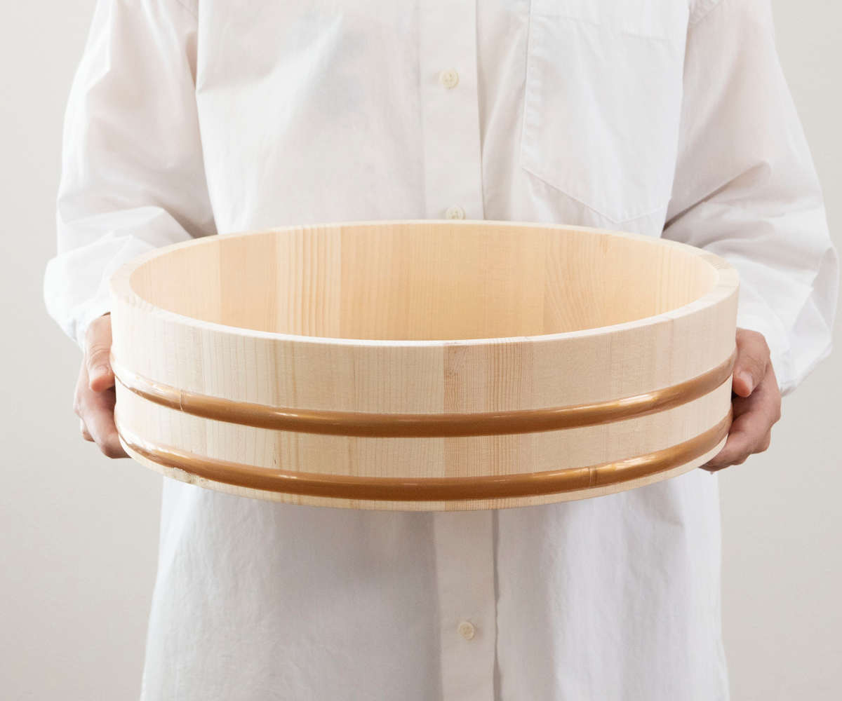 余分な水分を吸い取ってくれる、約7合用の天然木製の寿司桶