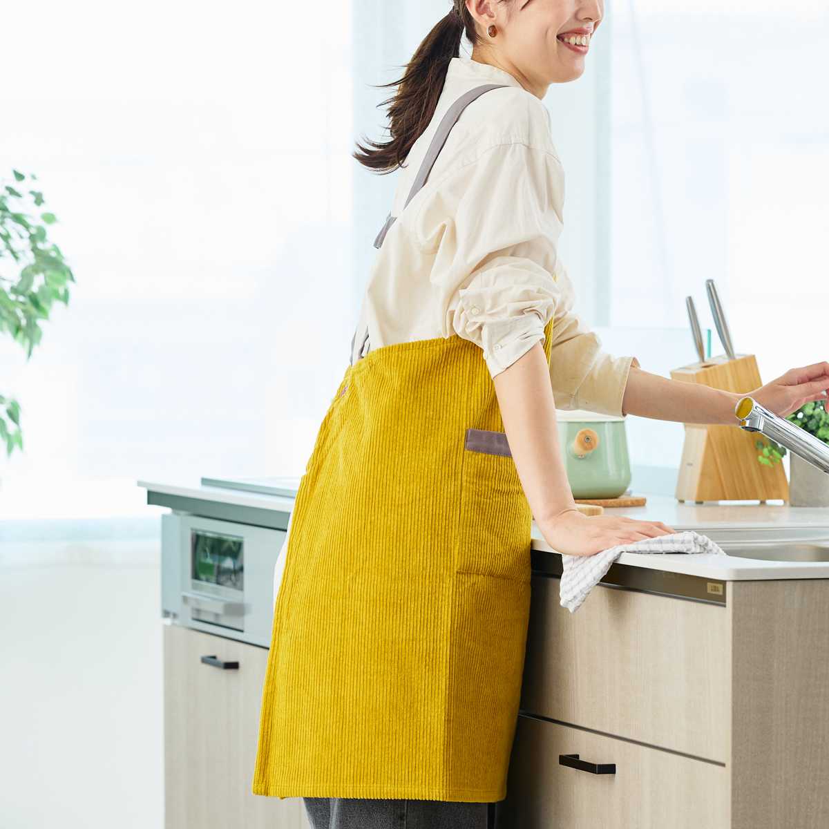 ●毎日使いたくなる柔らかなコーデュロイ素材を使用したエプロンです。