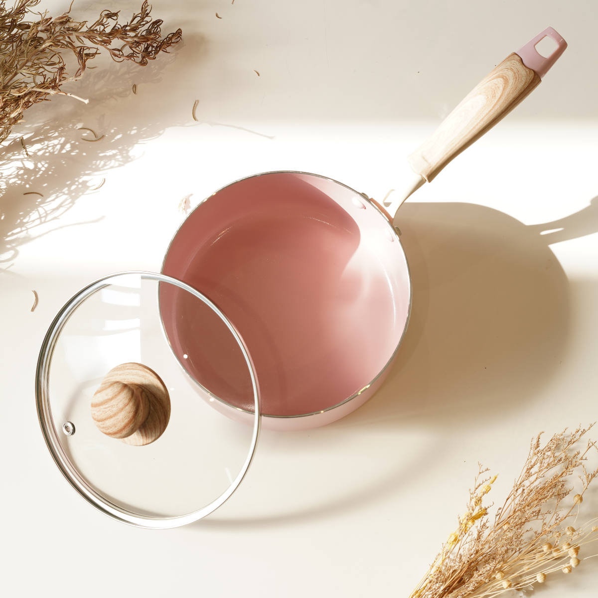 やわらかなパステルカラーに上品さをプラスしたパステルモダンカラーの片手鍋です。軽やかで洗練された色合いがキッチンを明るく彩ります。