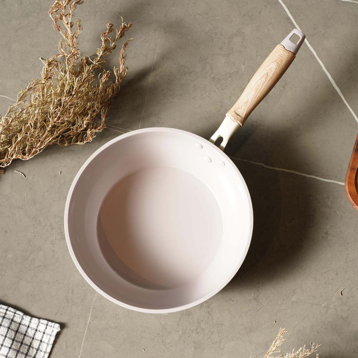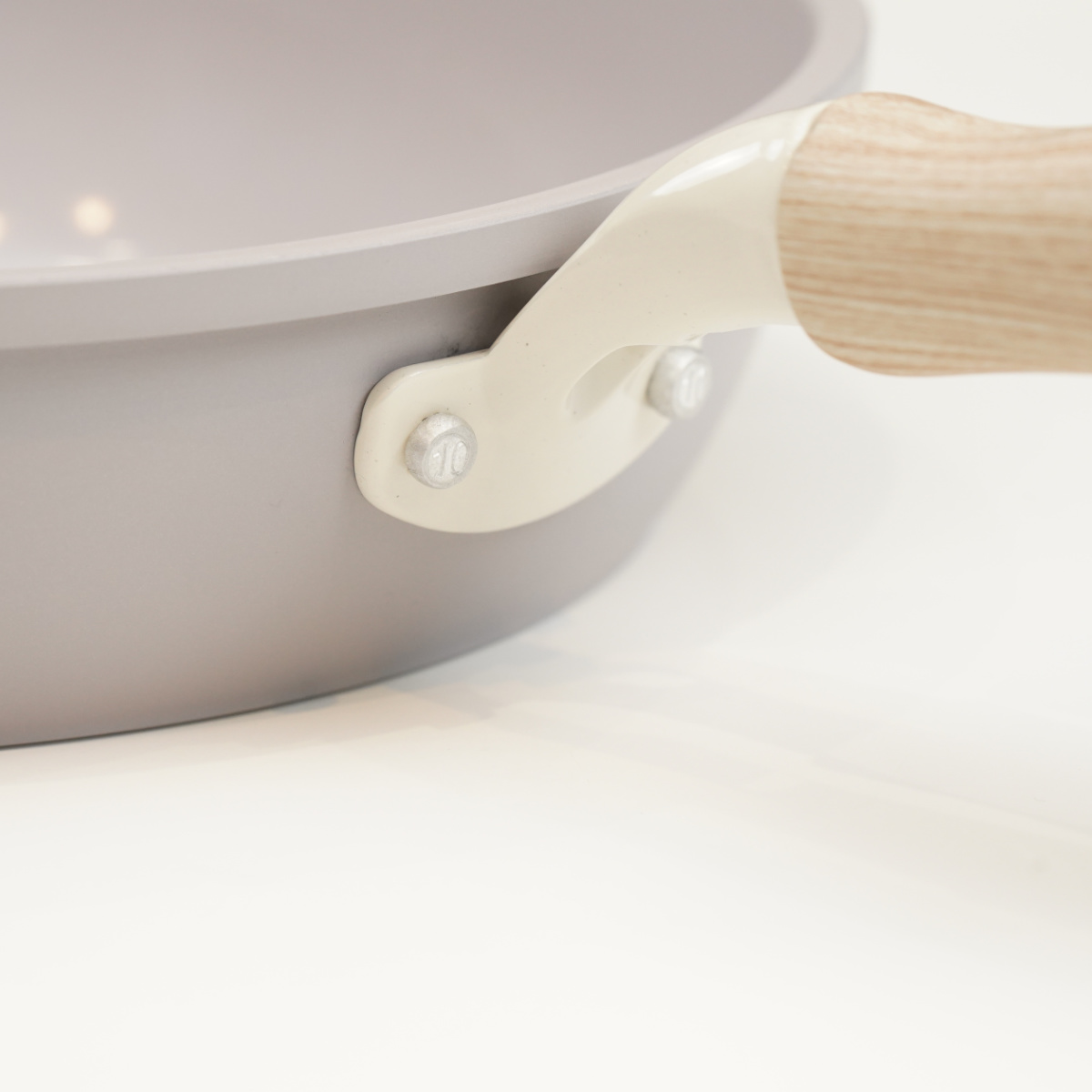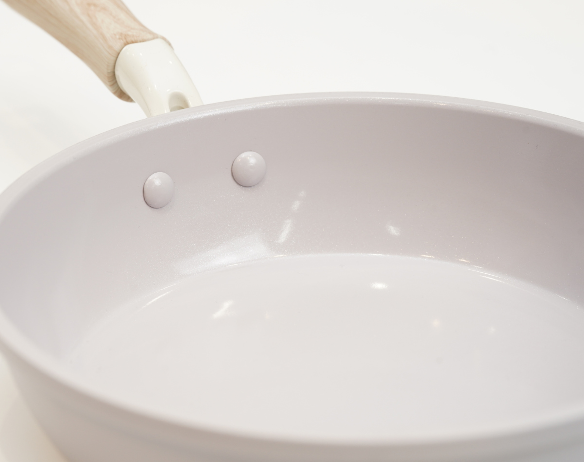 内面はセラミック加工が施されており、焦げつきにくく少量の油で調理できます。また、外面には焼き付け塗装が施されており、傷がつきにくく、丈夫で長持ちします。