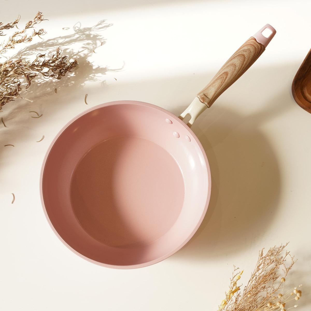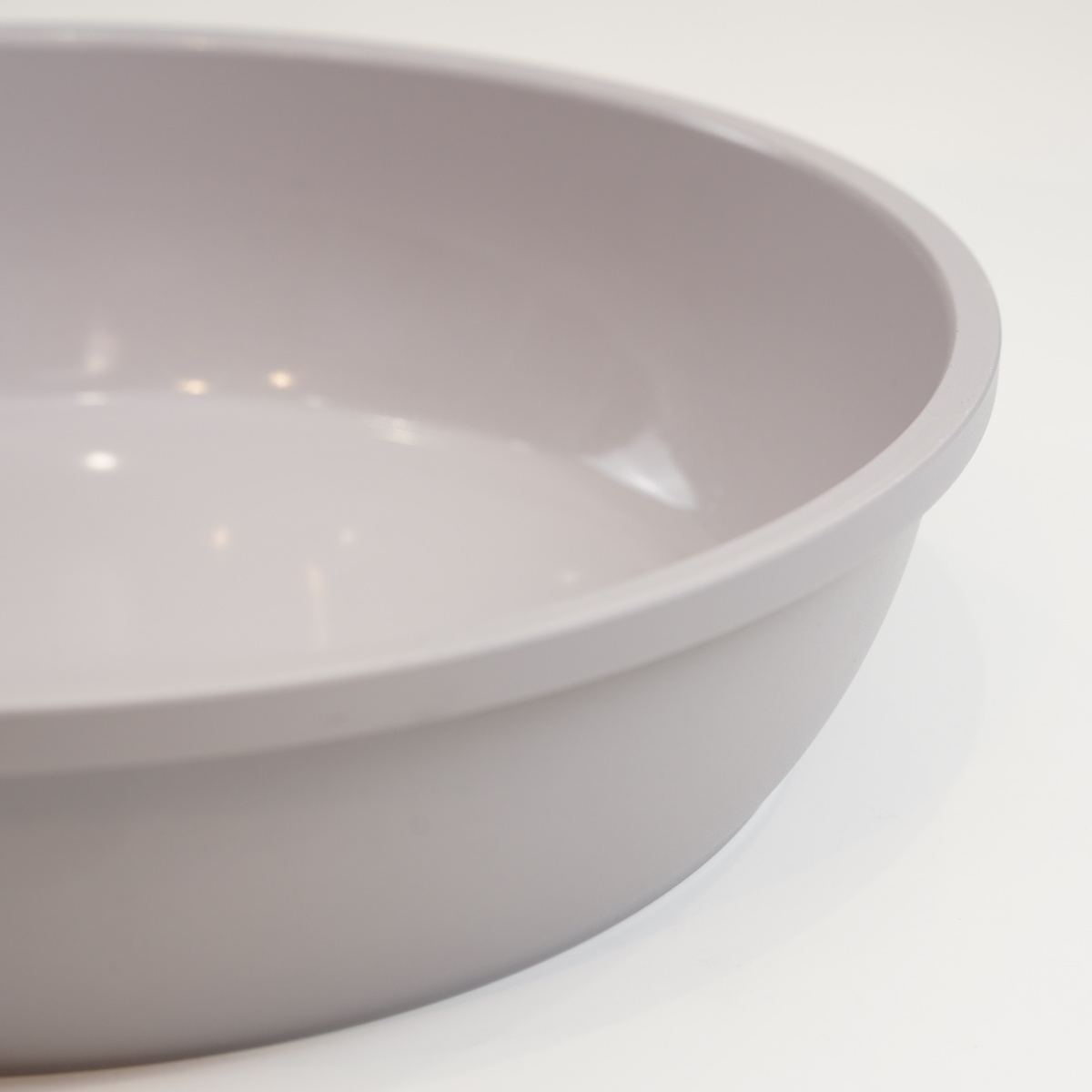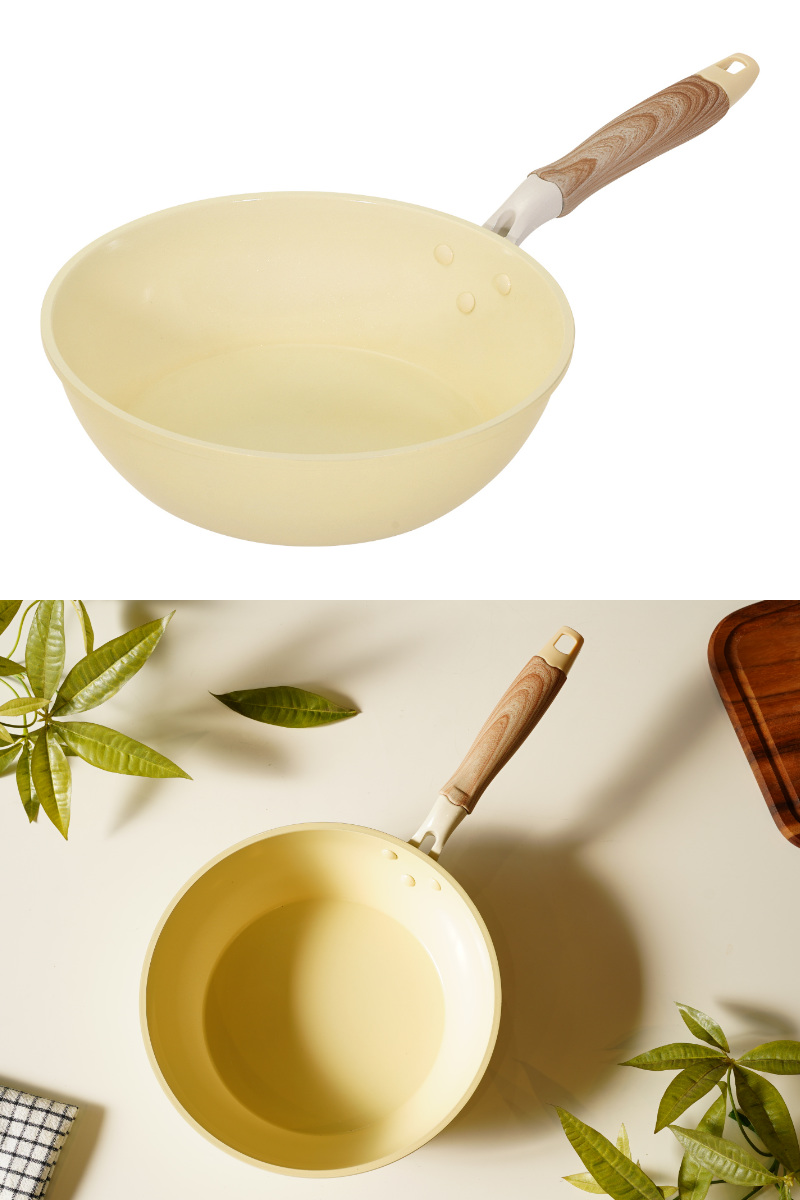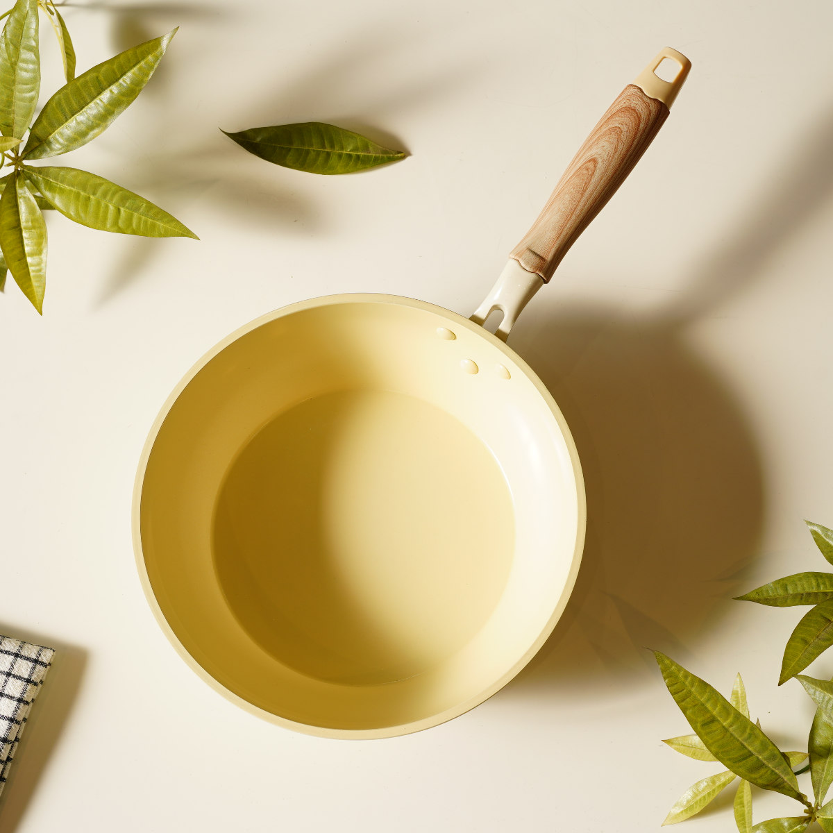 内面はセラミック加工が施されており、焦げつきにくく少量の油で調理できます。また、外面には焼き付け塗装が施されており、傷がつきにくく、丈夫で長持ちします。