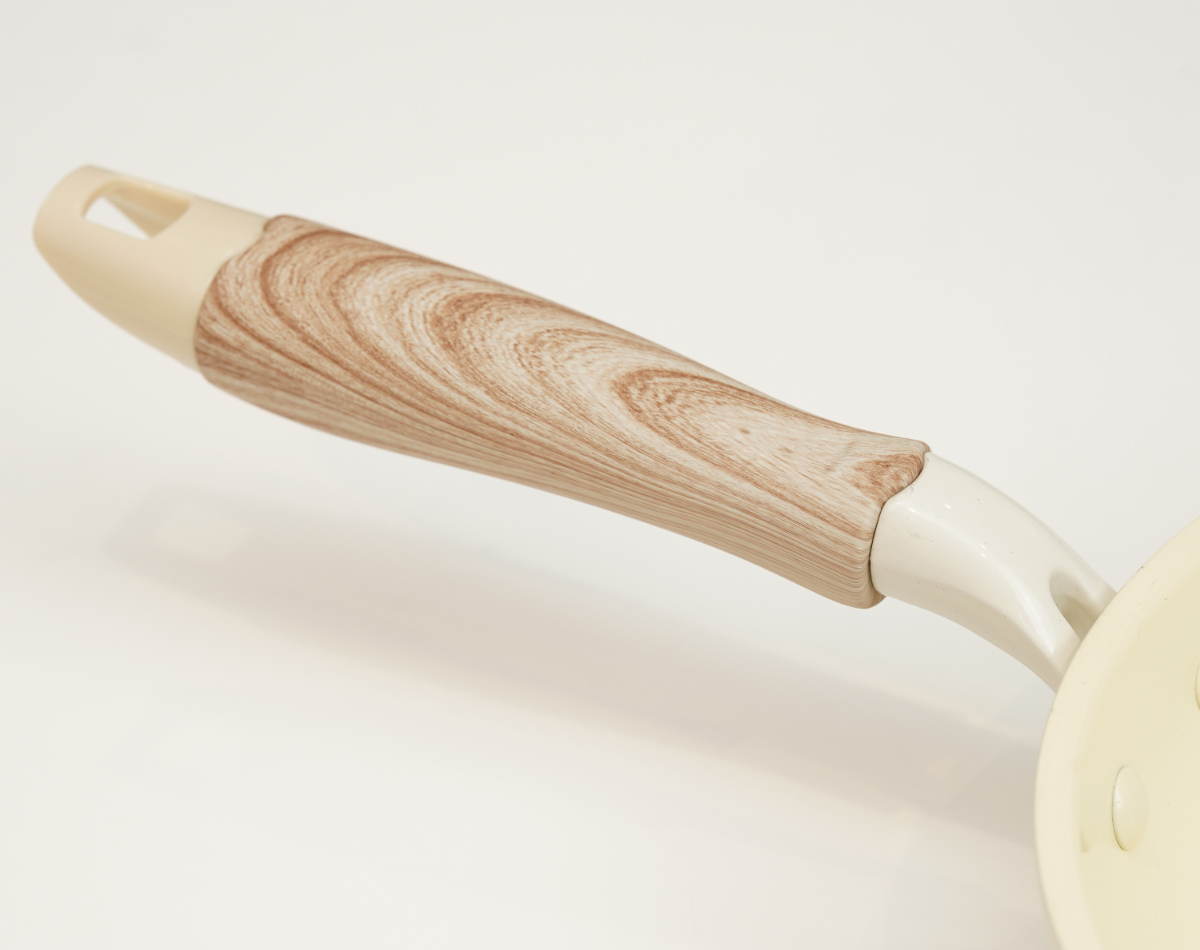 やさしい木目調がかわいい、フェノール樹脂製のハンドルです。目のかわいさだけでなく、熱が伝わりにくく安心してにぎれるのも嬉しいポイントです。