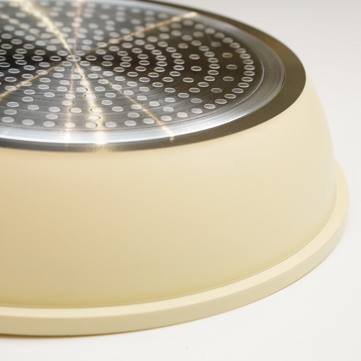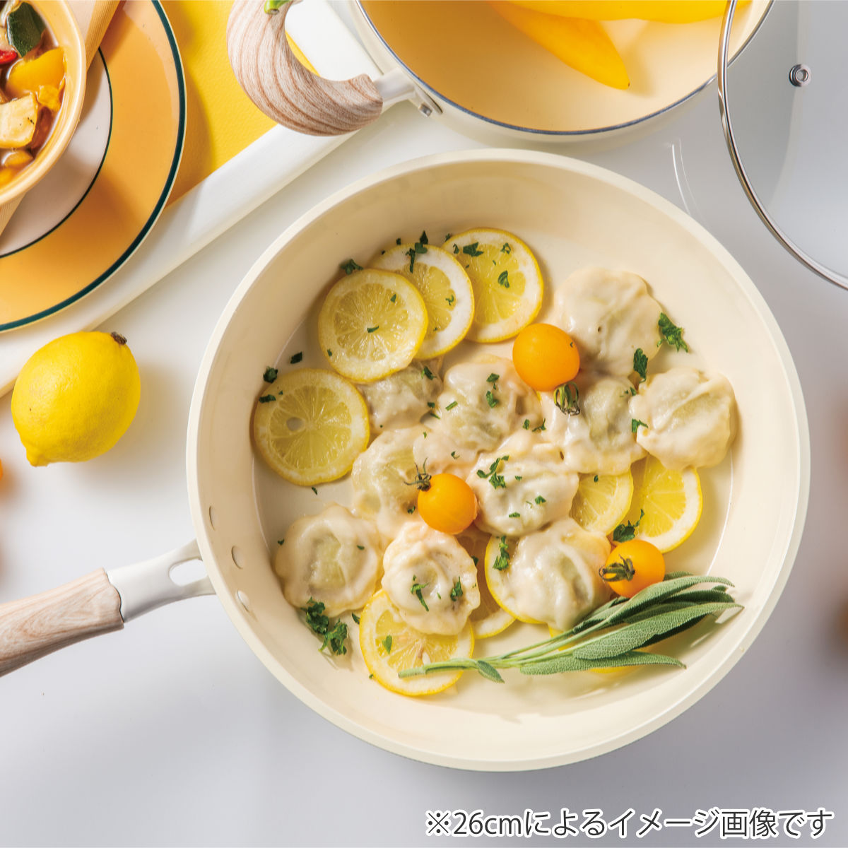炒め物はもちろん、煮込み料理も作りやすい深型24cmフライパンです。IHクッキングヒーター、ガスコンロをはじめオール熱源に対応しており、明るいカラーで毎日のお料理の時間を楽しくしてくれます。